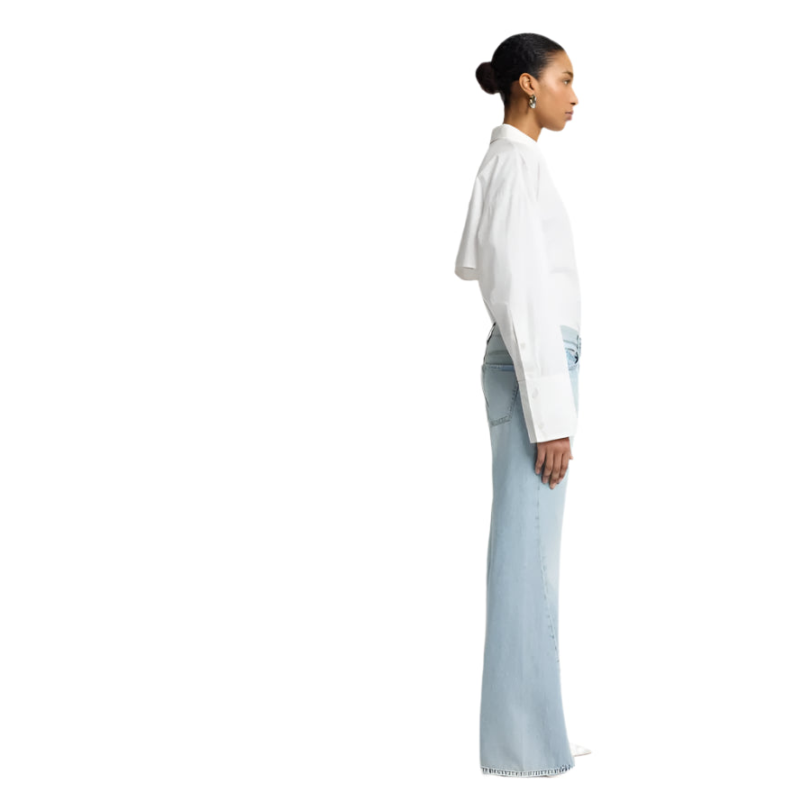 Fits like: A mid-rise flare with a full-length silhouette that hugs through the hips and thighs before flaring out at the knees for a retro-inspired, leg-lengthening effect. The twisted seam detail adds a unique, elevated touch.