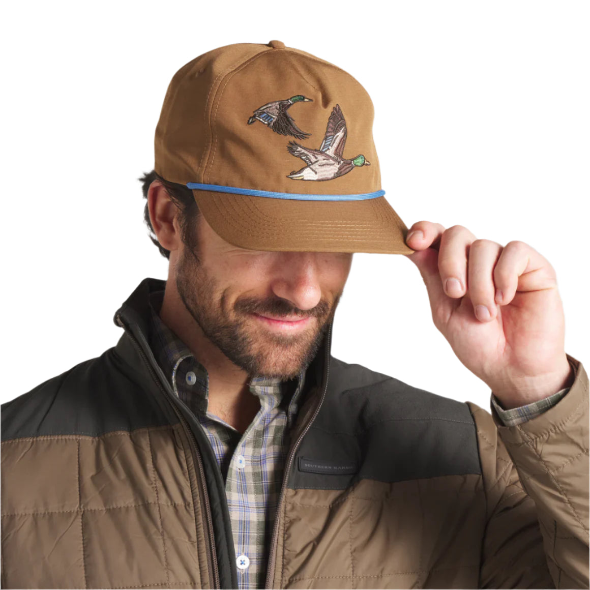 Featuring pair of flying Mallards on front, our Ensenada Rope Hat - Wildlife - Ducks is crafted from 100% ripstop polyester and features an adjustable snap closure for the perfect fit. This hat is lightweight and durable, making it the perfect accessory for all your duck hunting adventures this season.