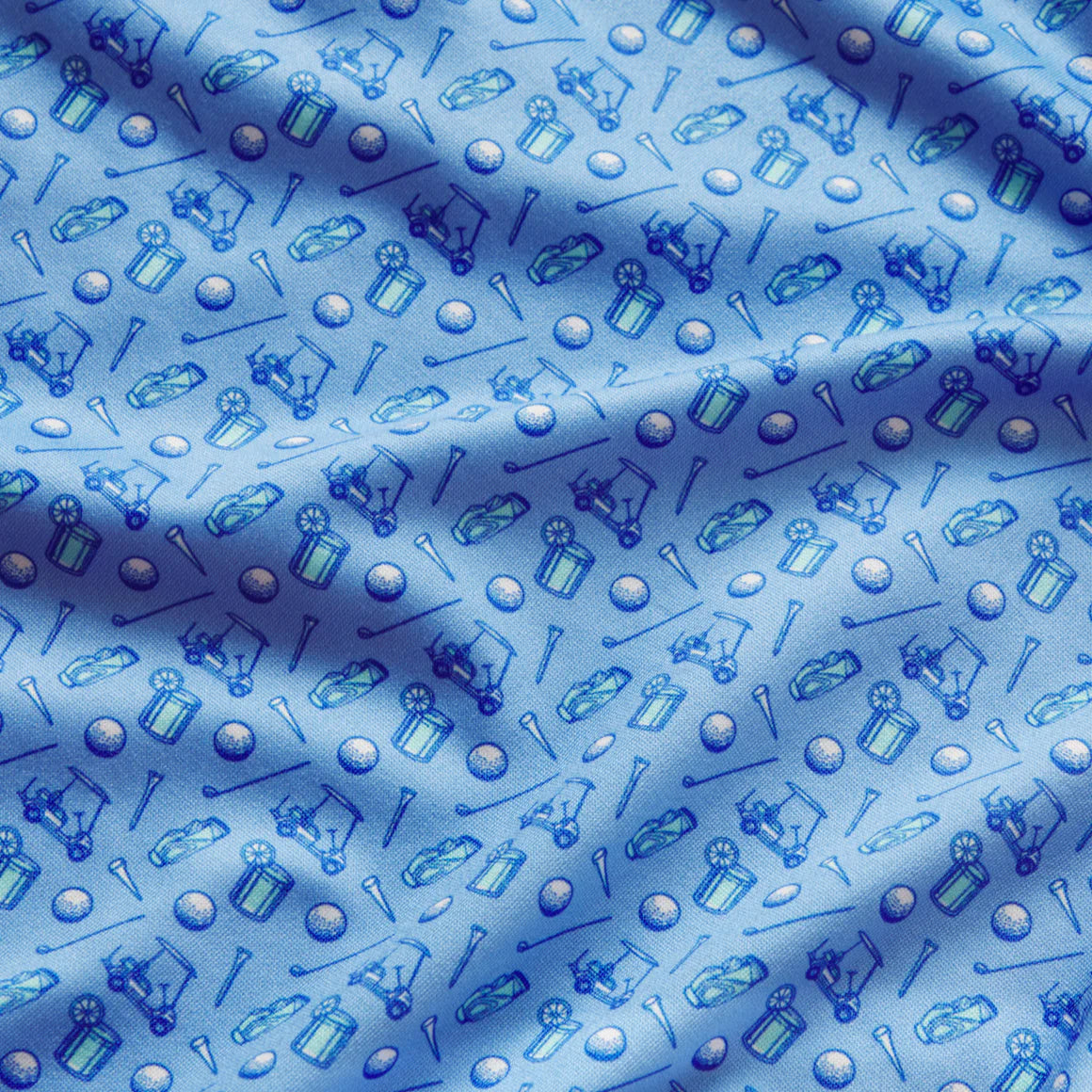 Perfect for a day out on the links, our Flyline Performance Polo - Cart Path Only blends lightweight comfort with playful style, featuring an all-over micro print of golf carts, clubs, balls, and tees. Designed with a three-button placket and soft, moisture-wicking fabric, it keeps you cool and comfortable on warm spring and summer days. Perfect for the golf course, the office, or client outings, it’s finished with our signature duck logo on the sleeve for a refined touch.