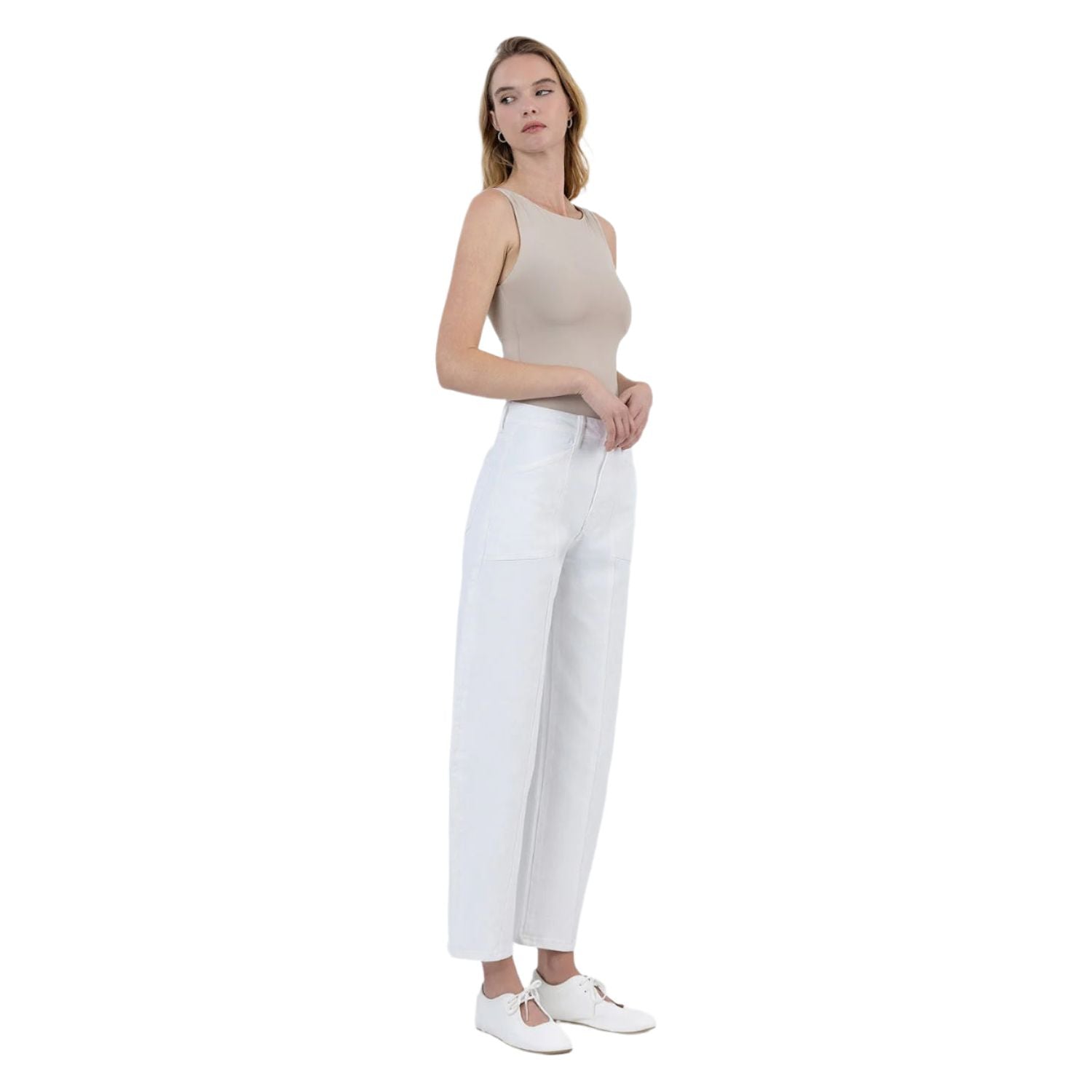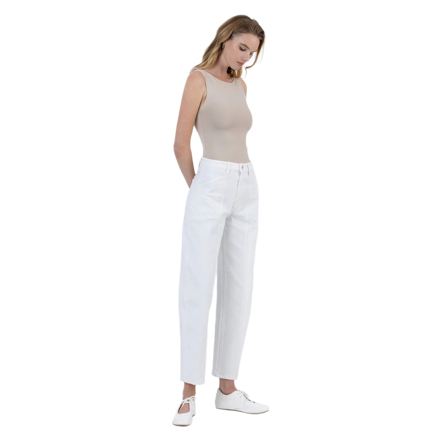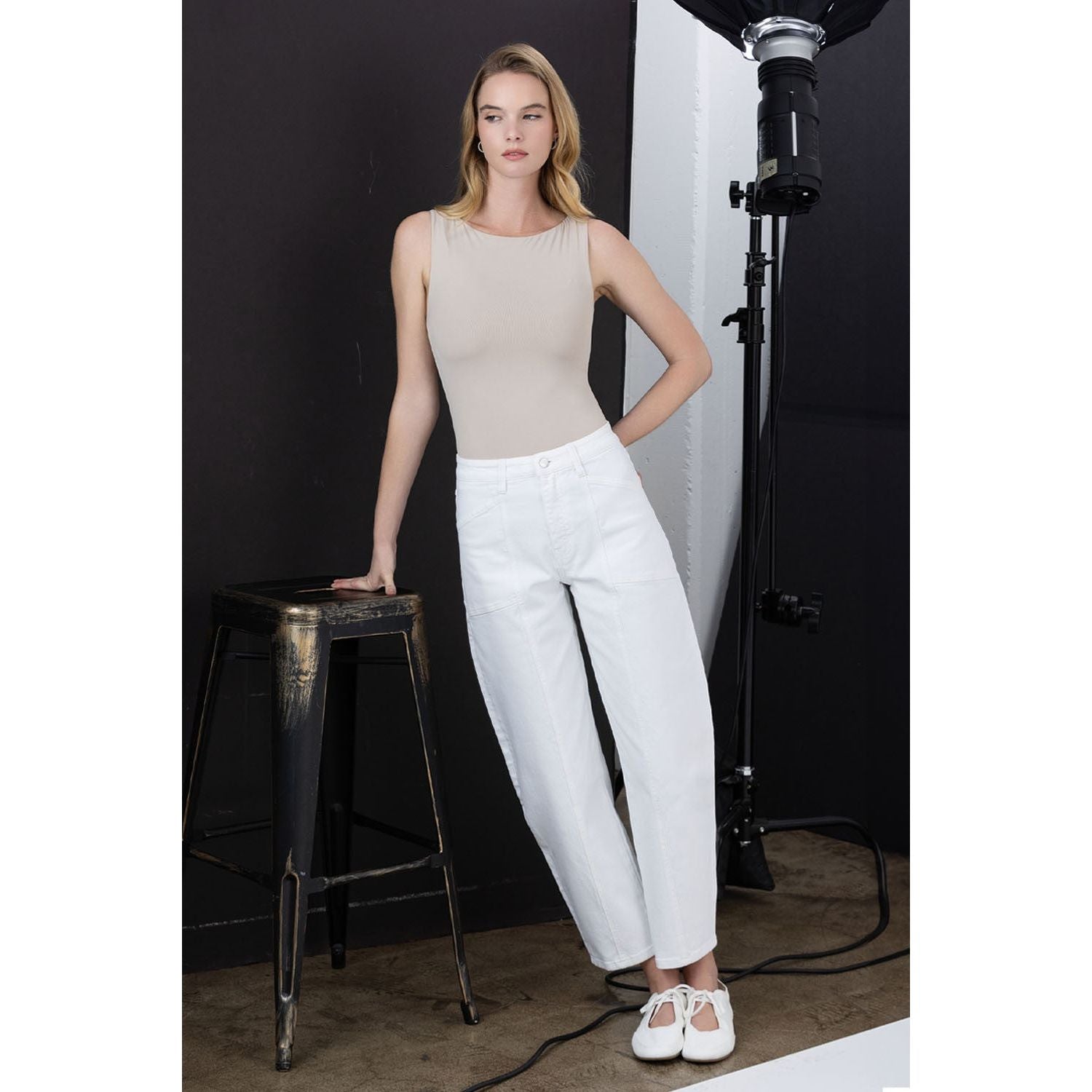 Super high rise panel barrel jeans Comfort stretch denim, Super high rise waist, Finished hem, cropped length,