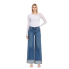 Women's Vervet High Rise Cuffed Panel Baggy Wide Jeans T6645