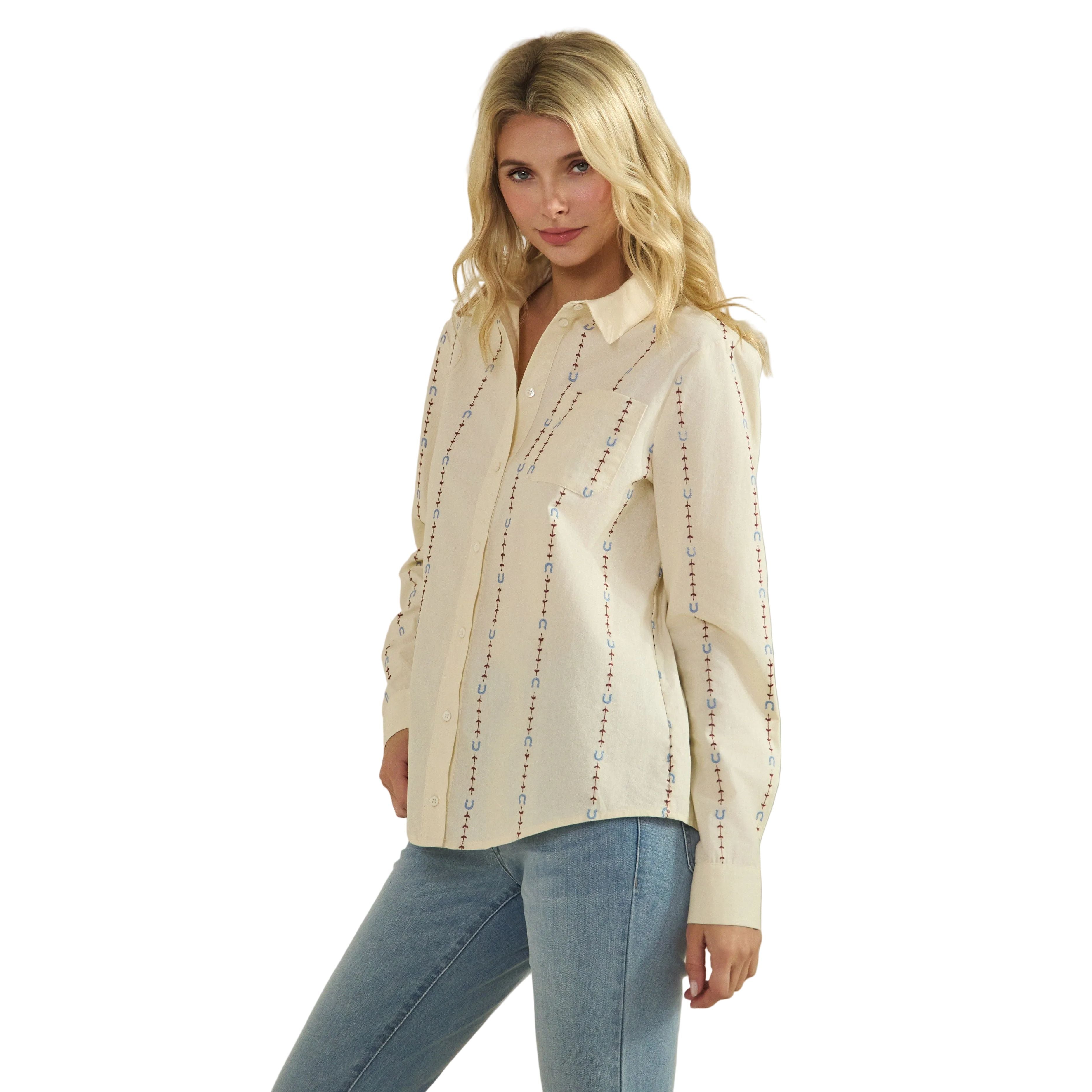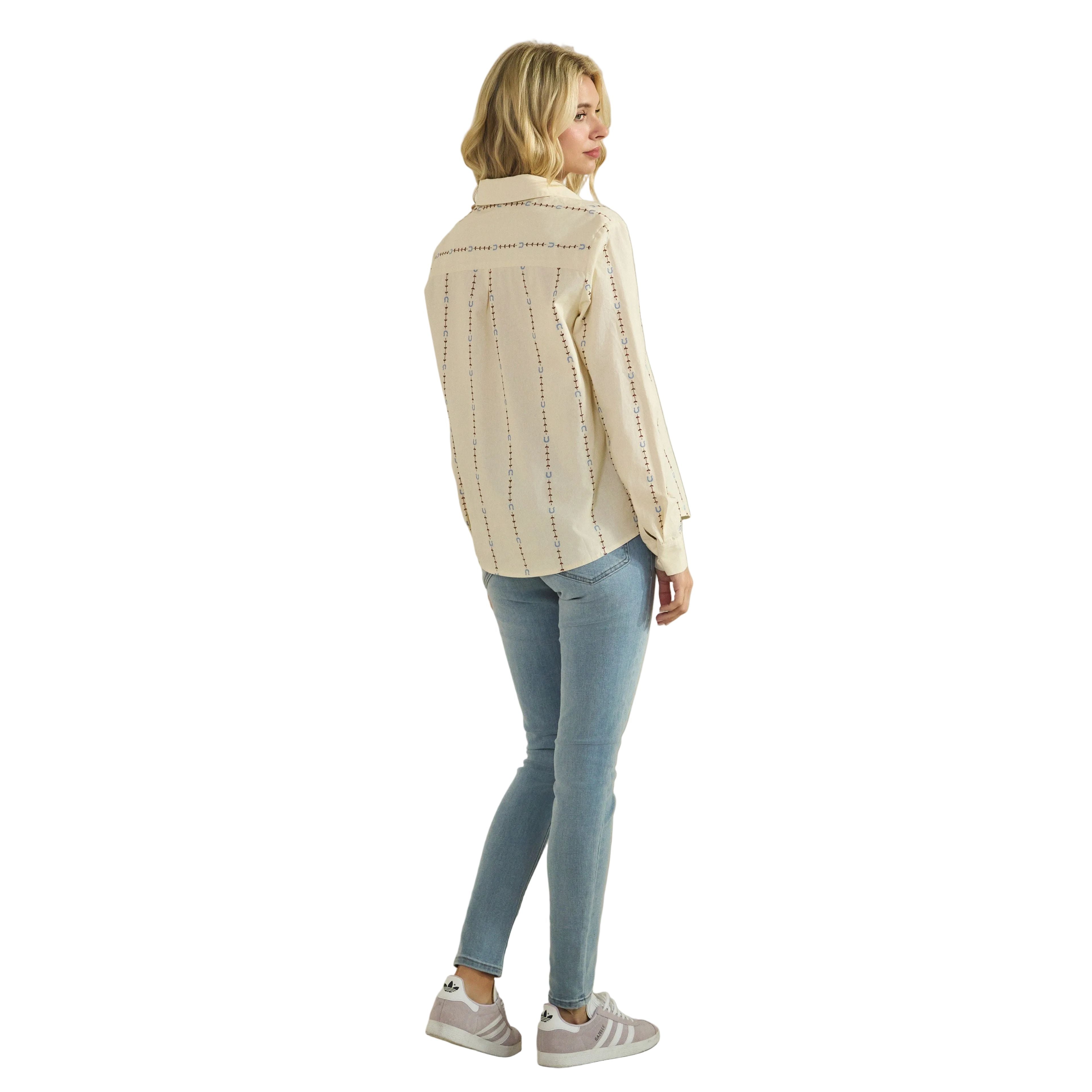 Women's Horseshoe Embroidered Fitted Shirt Blouse SDT6477