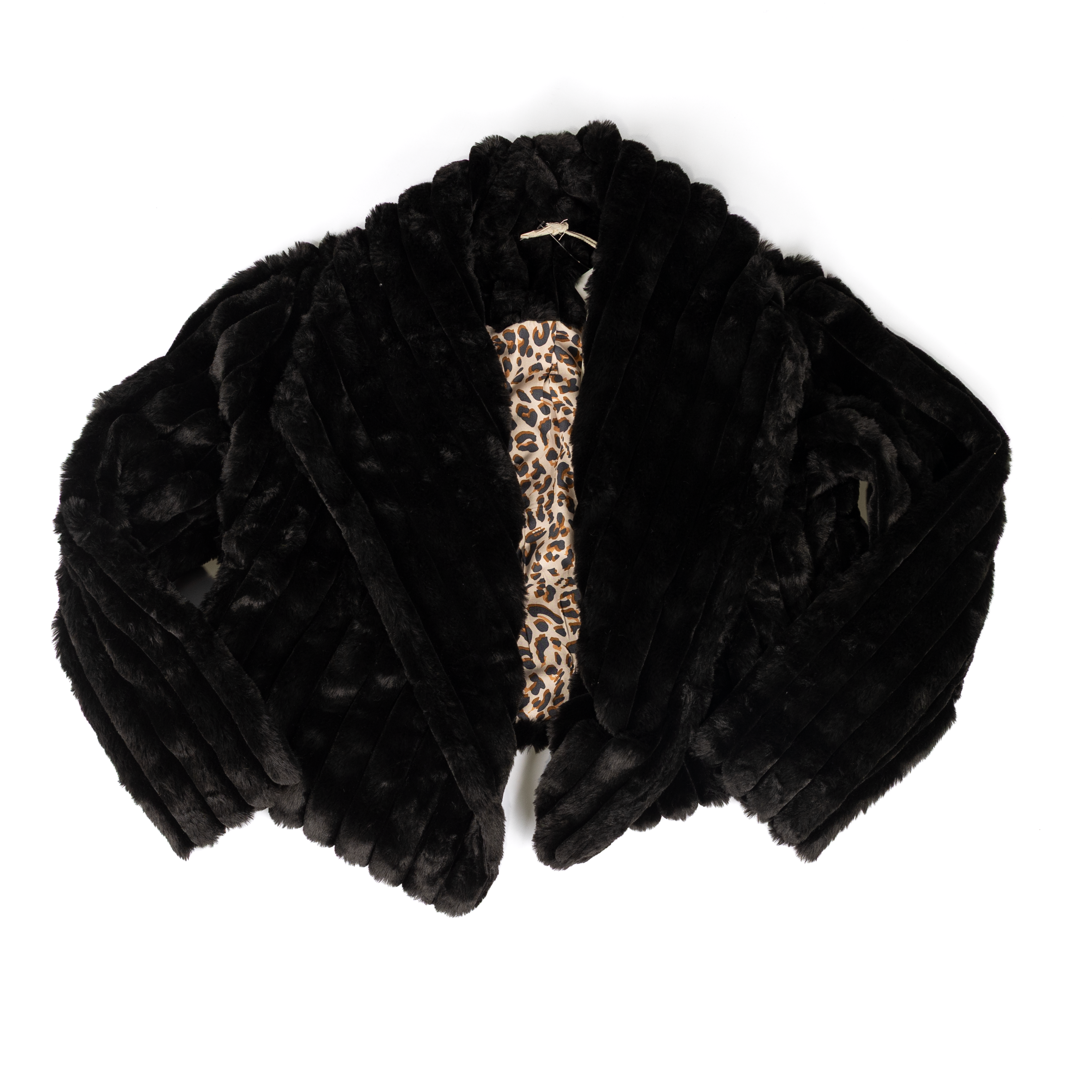 Women's Hem & Thread Faux Black Fur Cheetah Print Lined Jacket 36522