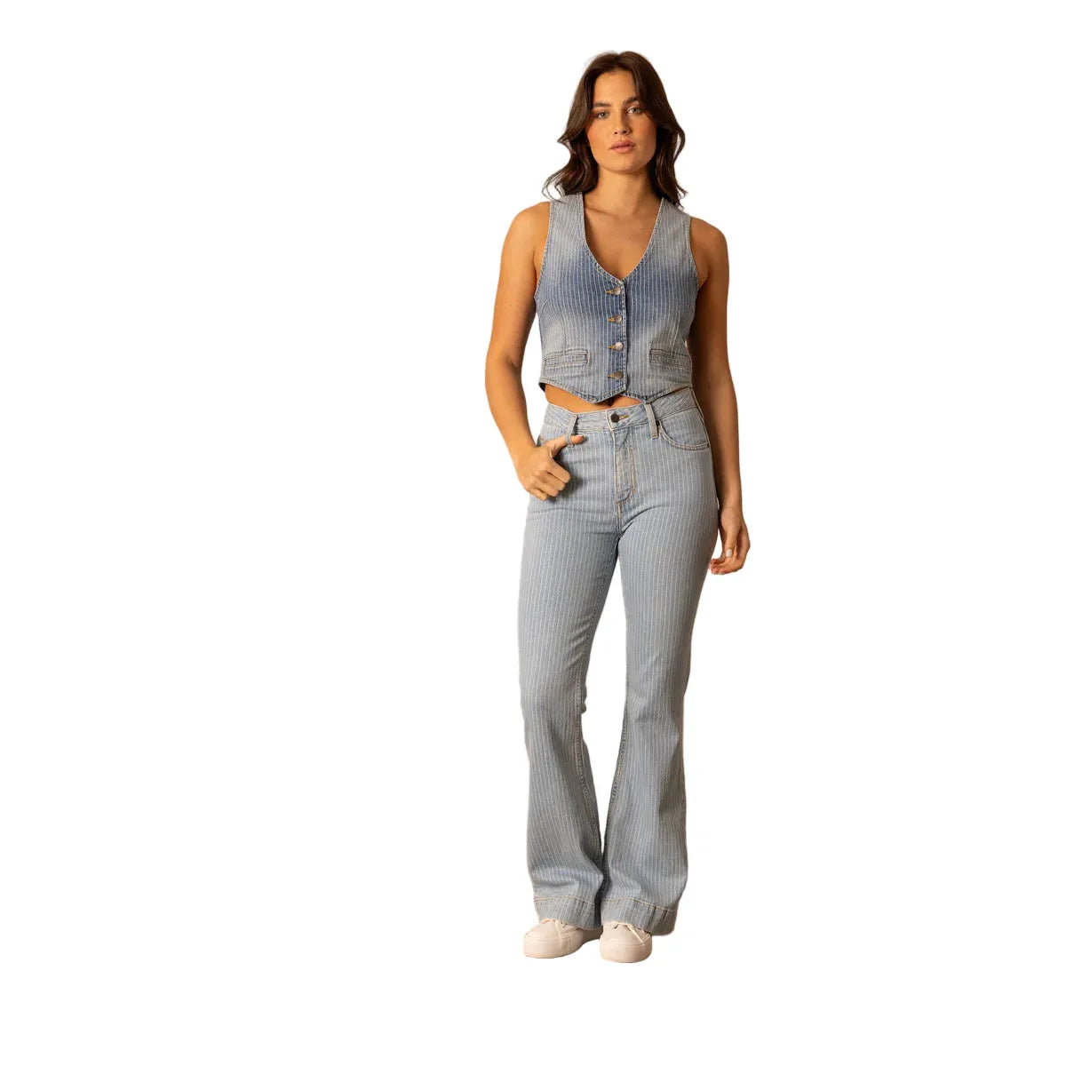 The Candace Vest captures the spirit of Western style with a fresh, feminine twist. Designed for the modern cowgirl, this denim vest blends timeless craftsmanship with a figure-flattering silhouette that elevates any outfit. Crafted from premium pinstriped denim with a touch of stretch, it moves with you comfortably while holding its shape all day long.