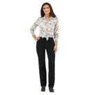 Ready to steal the show, our Women's Wrangler Retro® Saddle Up Western Snap Shirt will take any outfit up a notch. It's super-soft with a colorful print that tells the world where you'd rather be—in the West. It features a slim fit that shows off your curves and a full snap closure for easy layering. Plus, this collared shirt comes with two chest flap pockets, pointed yokes, and a curved hem for extra Western authenticity.