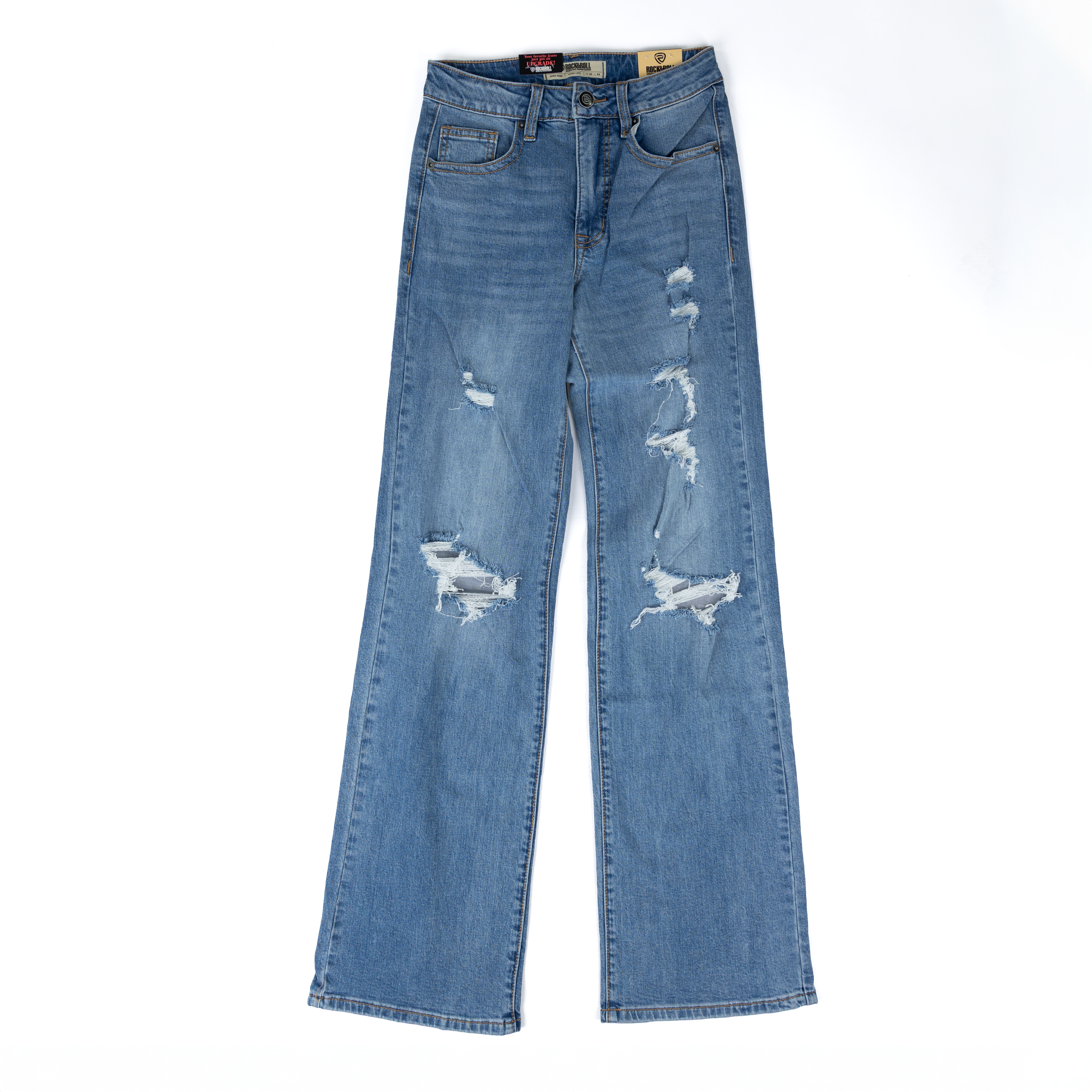 Women's Rock and Roll Denim Distressed Relaxed Wide Leg Jeans BW6HD08496