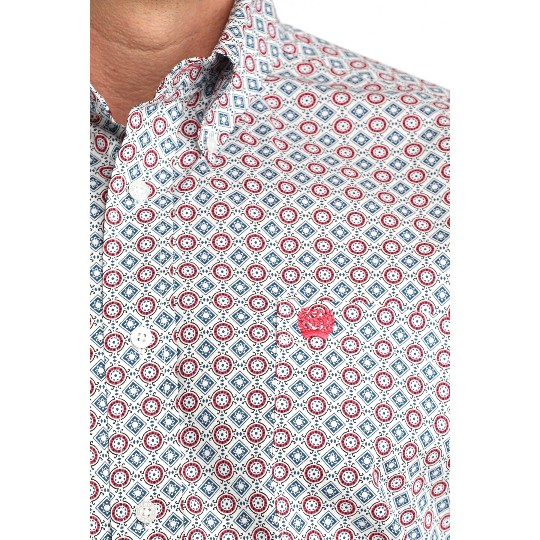 - Design: Geometric print with Cinch logo embroidery on chest pocket