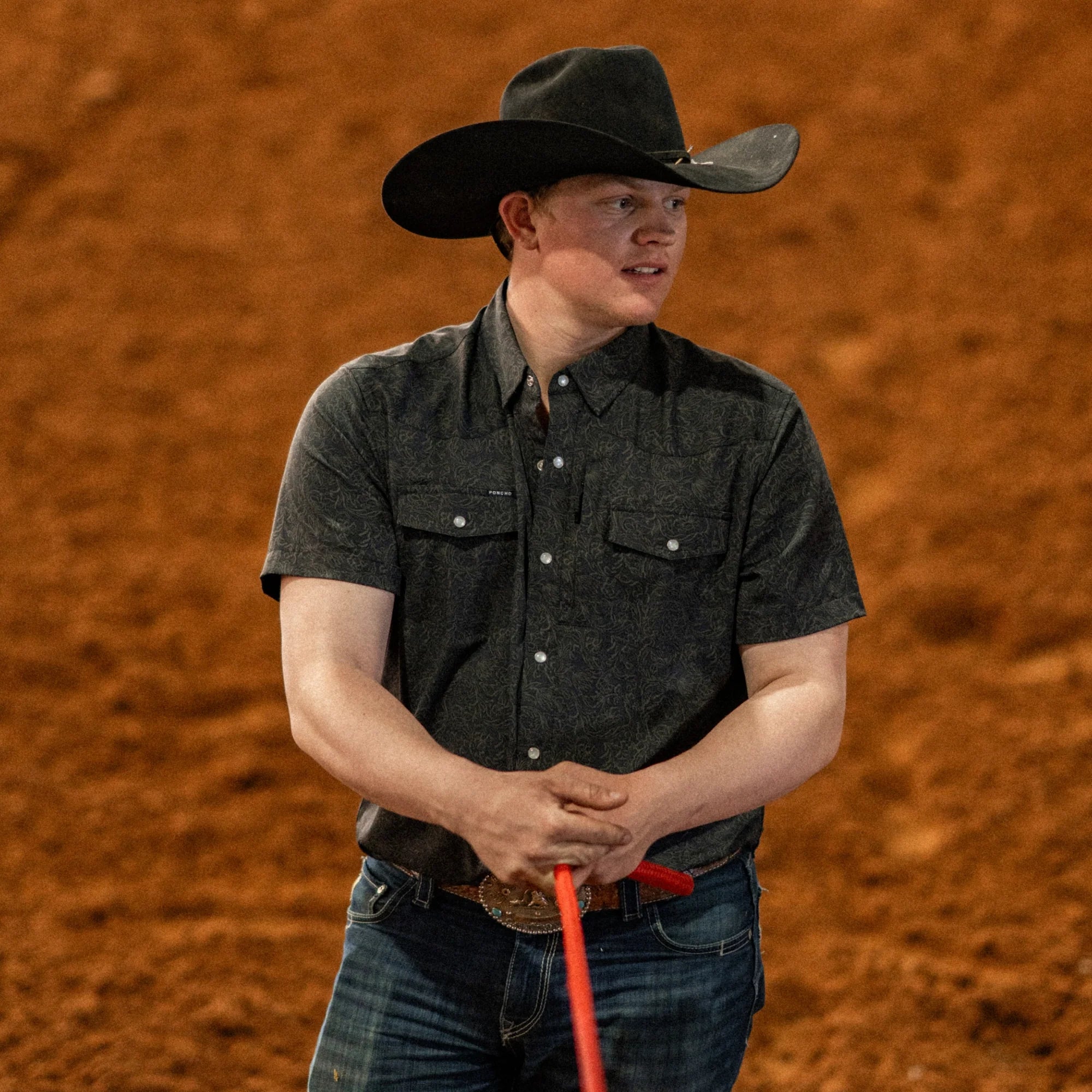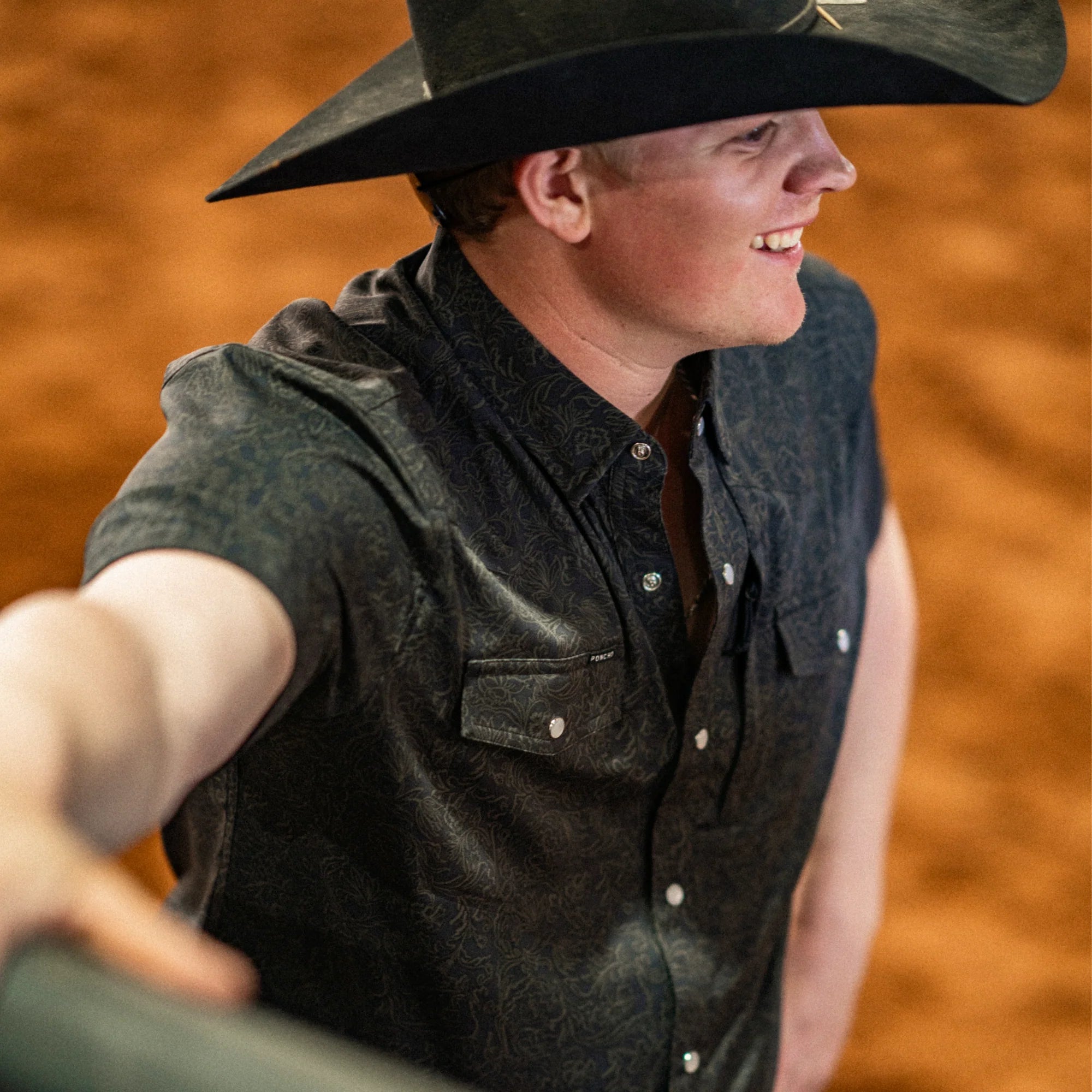 Men's Poncho "The John Coffee" Black Floral Print Short Sleeve Snap Shirt