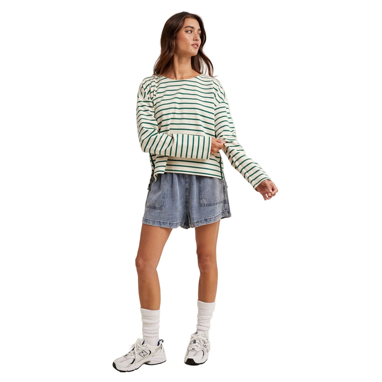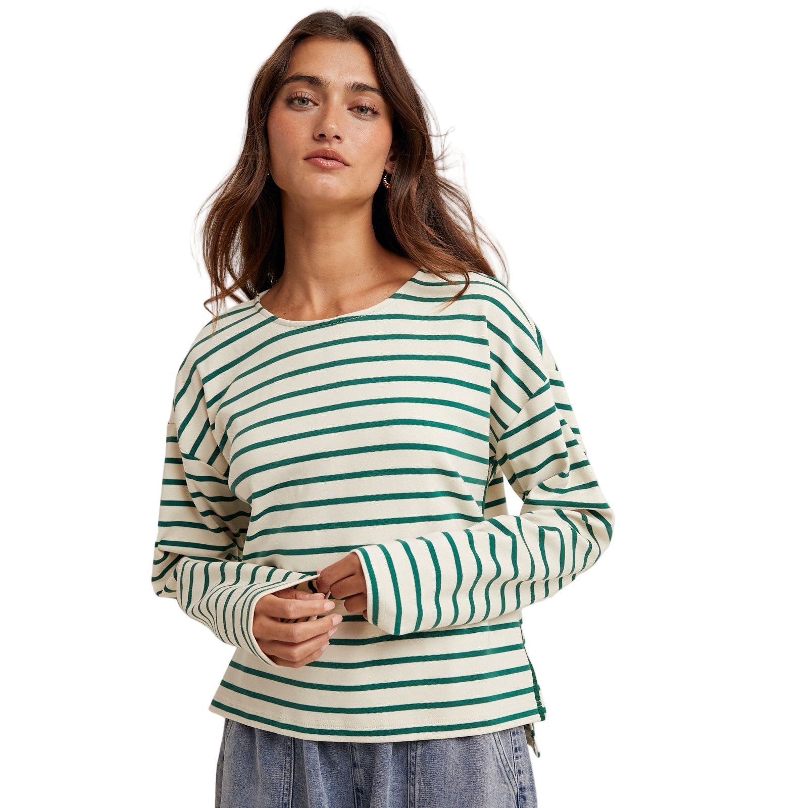 Women's Striped Knit Top With Contrast Side Stripes WL25-11252