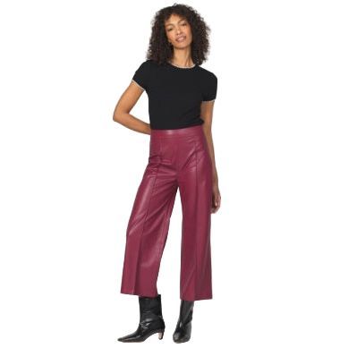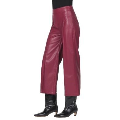 Wide-leg vegan leather pant 45% PU, 55% poly fr rise: 12 inseam: 25 L/O: 22 1/2
