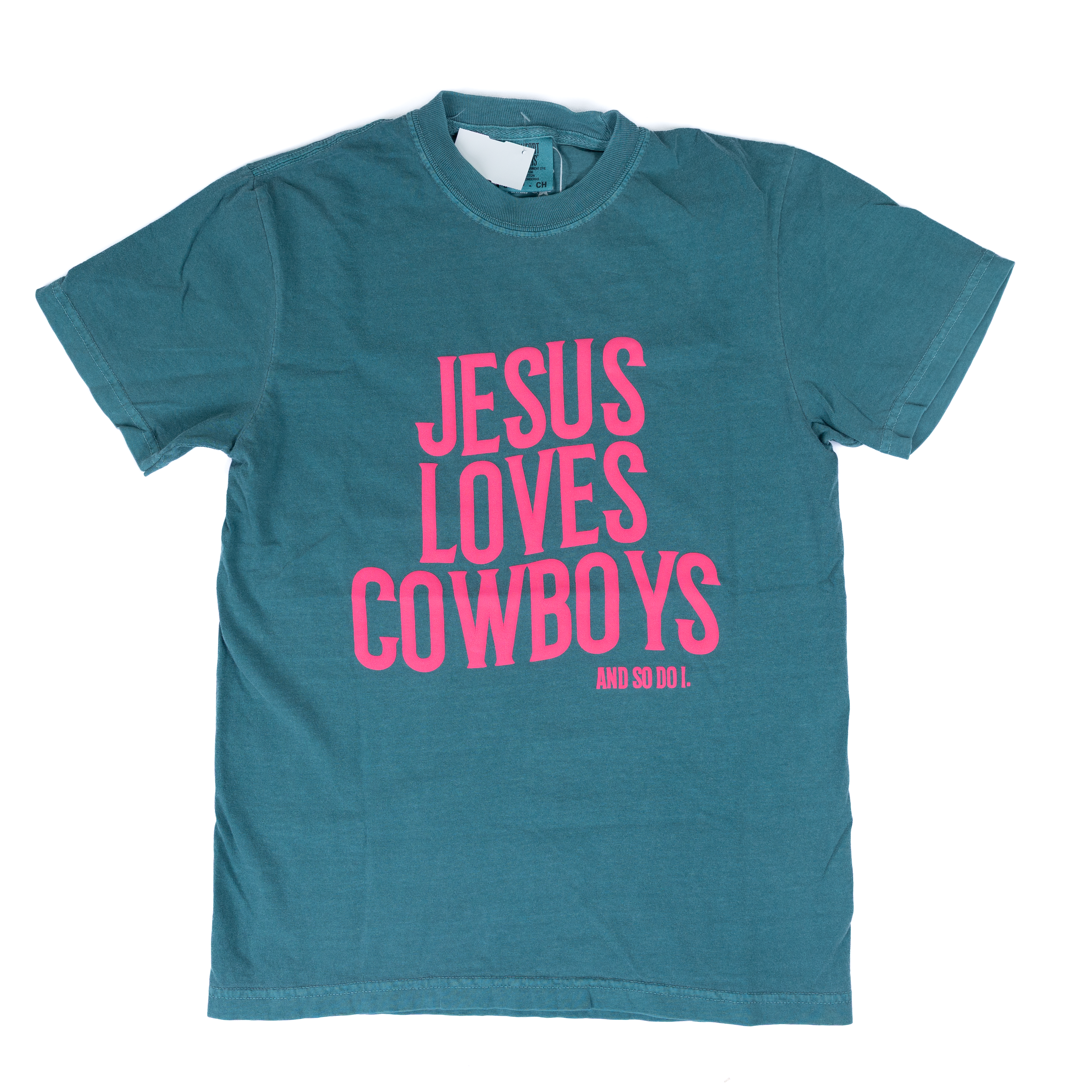 Women's Teal Short Sleeve "Jesus Loves Cowboys and So Do I" T-shirt