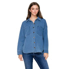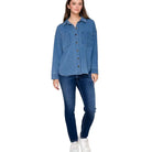 Women's Denim Collared Long Sleeve Button Top IJ-10035