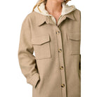Twofer Hoodie Solid Coat Attached hoodie layer with zipper closure Button down outer layer Bust and side pockets Knee length -Self 85% Polyester, 15% Viscose / Contrast 100% Cotton -Model wears: S / Model height: 5' 9"