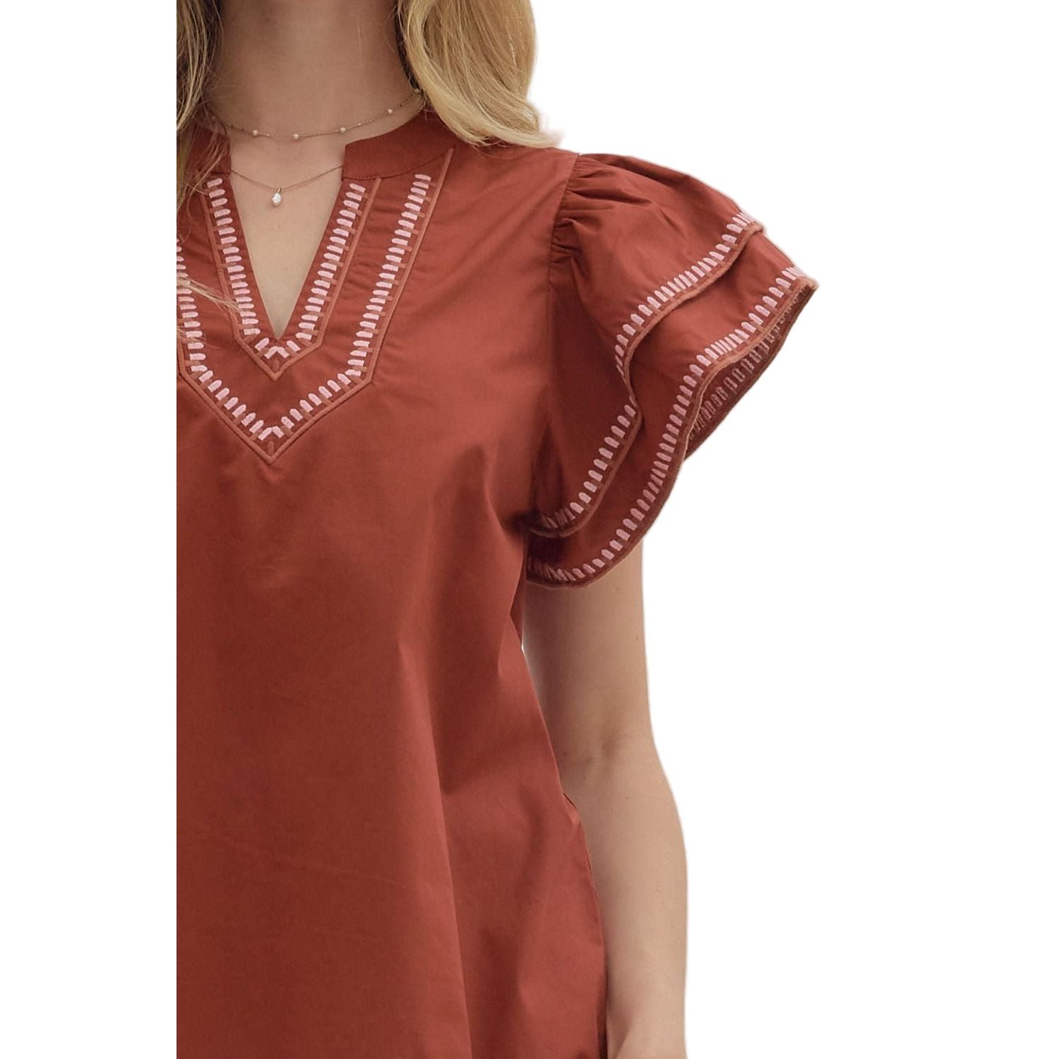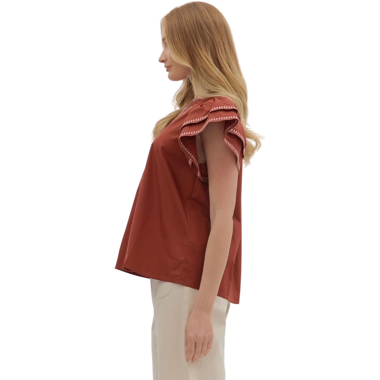 Women's Entro Solid Short Sleeve V-neck Top T28724