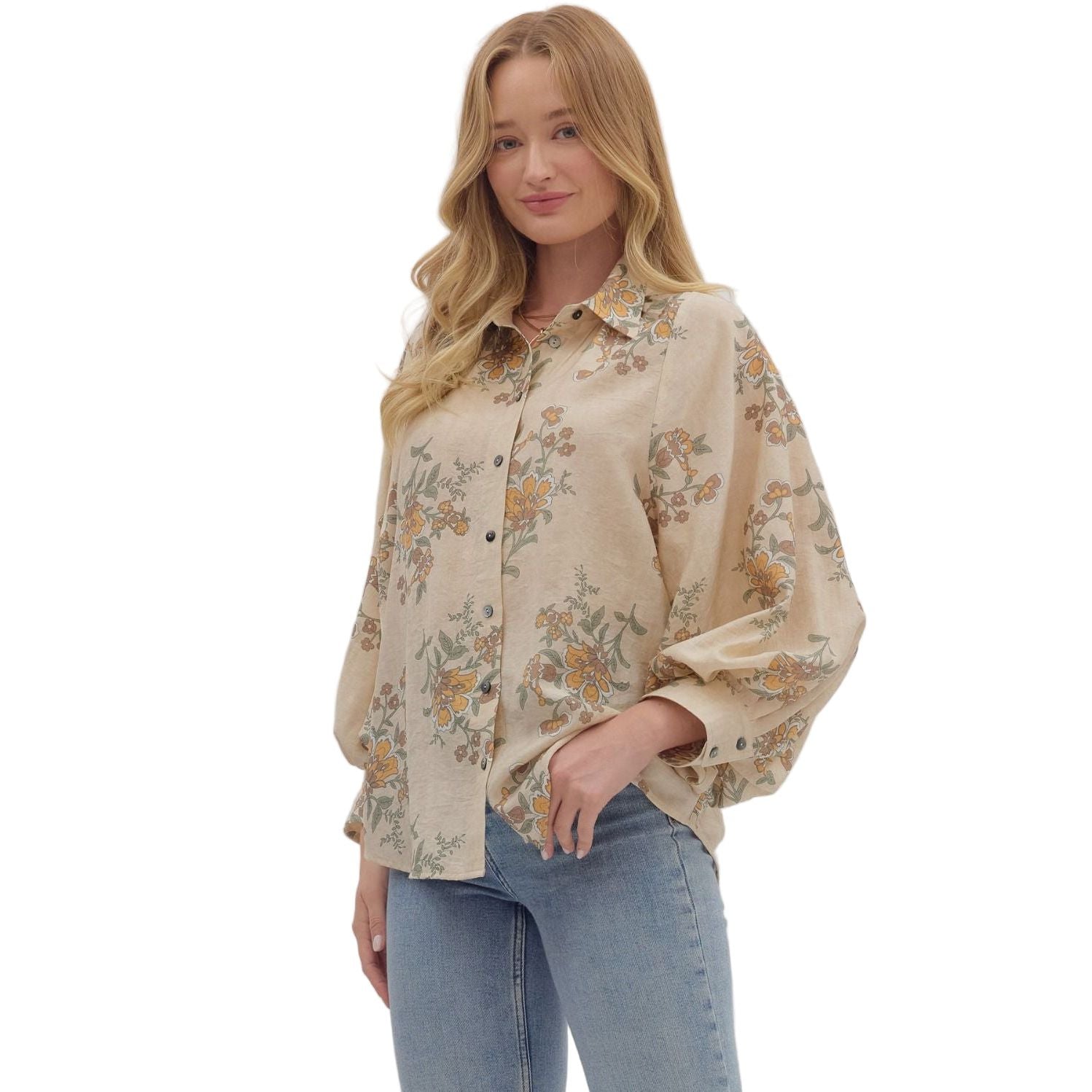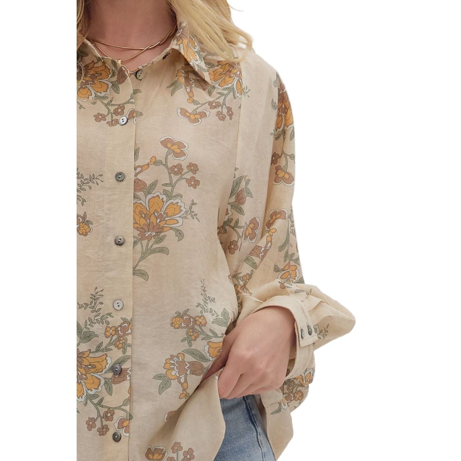 Women's Entro Floral Print Long Sleeve Button Down T29041P