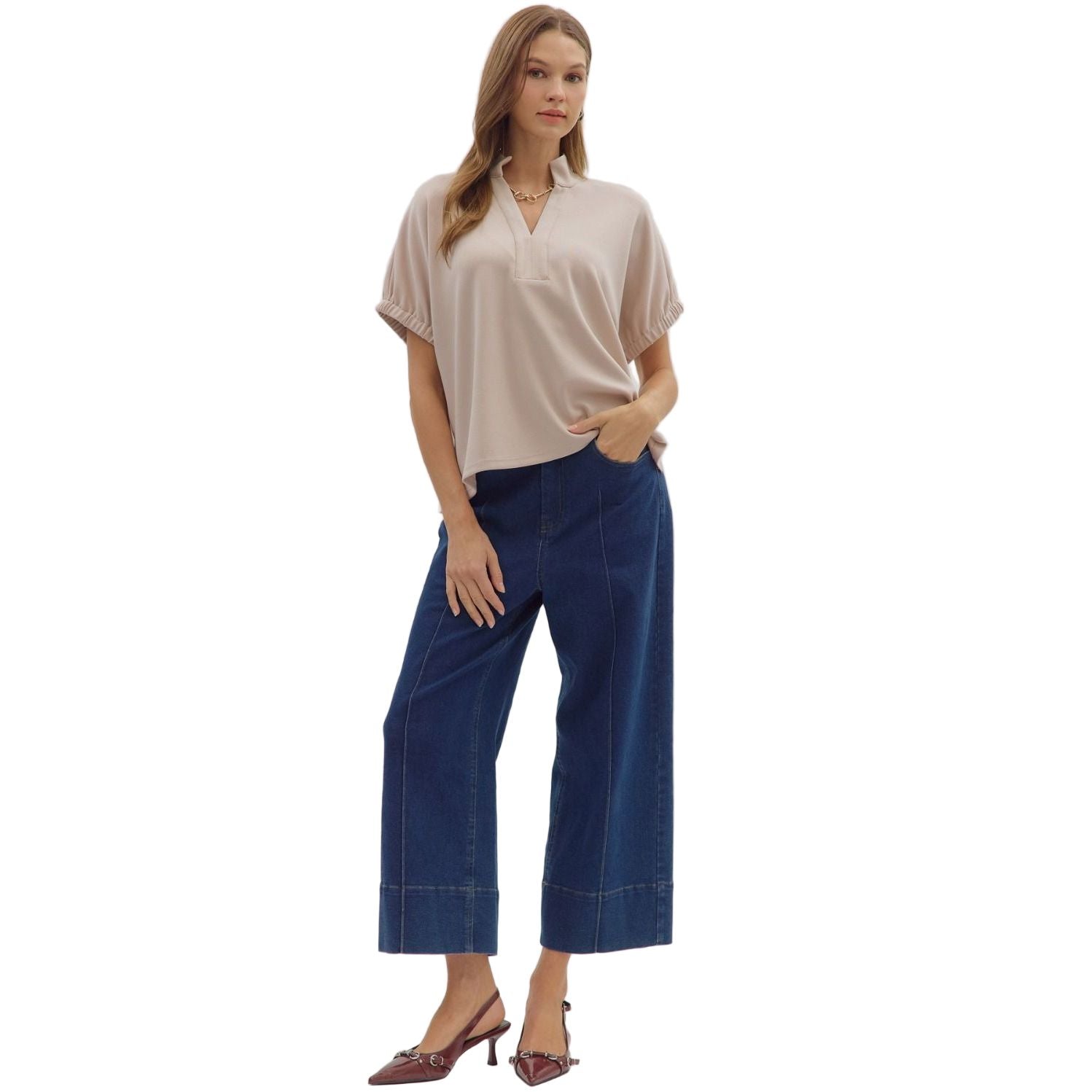 Women's Entro Solid Wide Leg Ankle-length Pants P27096