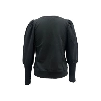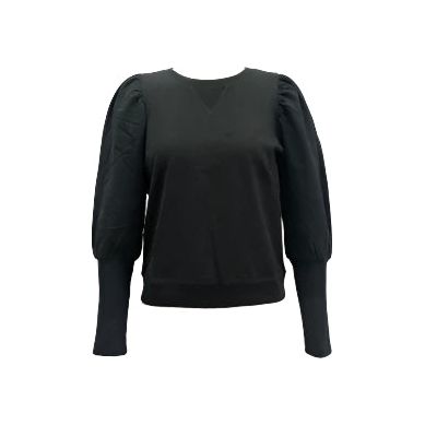 Puff sleeve top with rib cuffs and rib detail 95% cotton 5% spandex