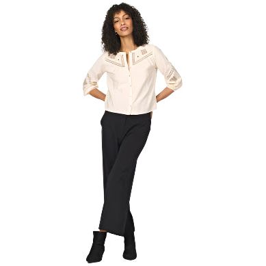 Long sleeve button front embroidered top 85% Rayon, 15% Polyester