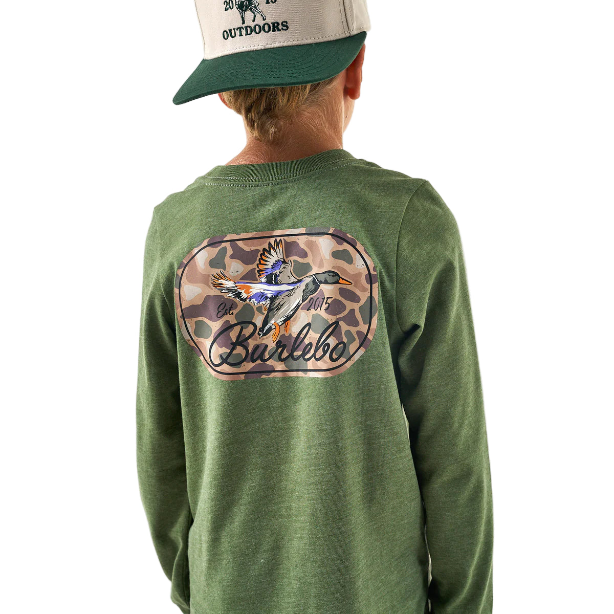 Boy's Burlebo Long Sleeve Duck Flying in Tee Olive Green Y-LST-DFI-HO