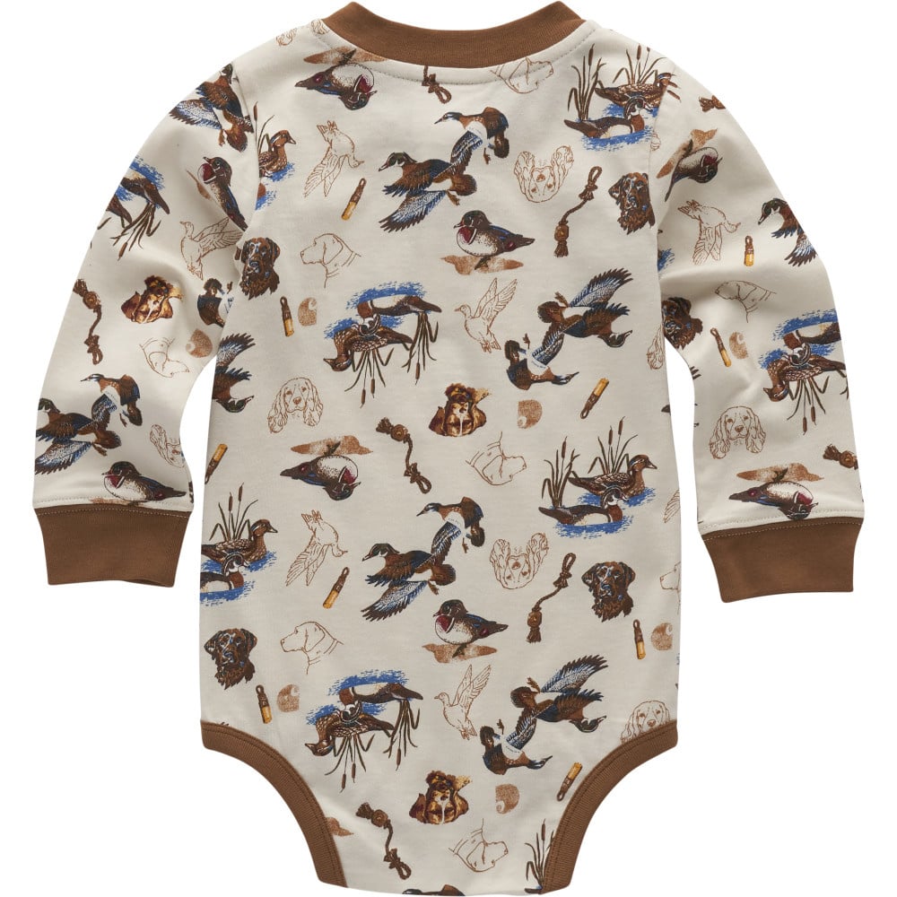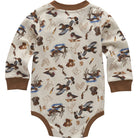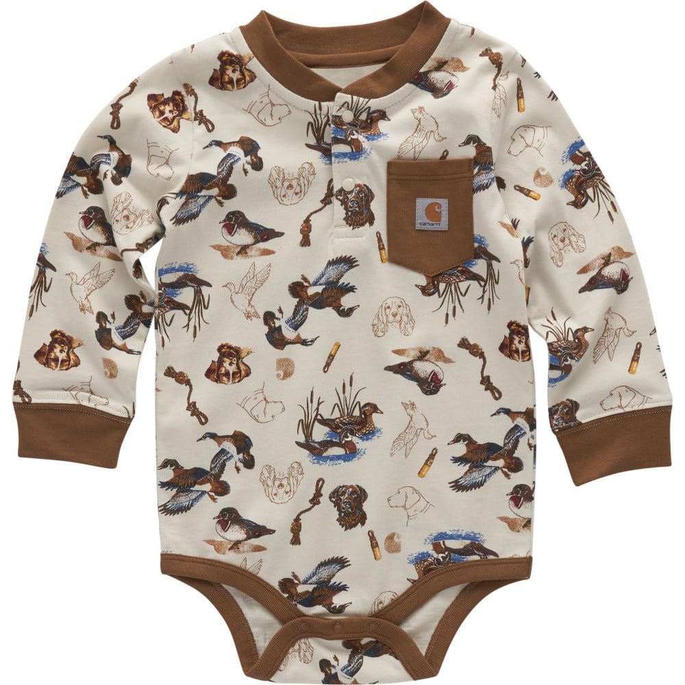 The hunt is on... for a fun outfit that's cotton soft and tough as Carhartt. This baby boys' henley bodysuit has snaps at the collar and crotch for hassle-free changing. The allover dog and duck print is just icing on the cake.