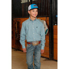 Boy's Cinch Light Blue Diamond Print Shirt MTW7060386
