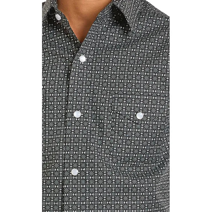 Boy's Rock and Roll Geometric Long Sleeve Snap Shirt RBN2S06924