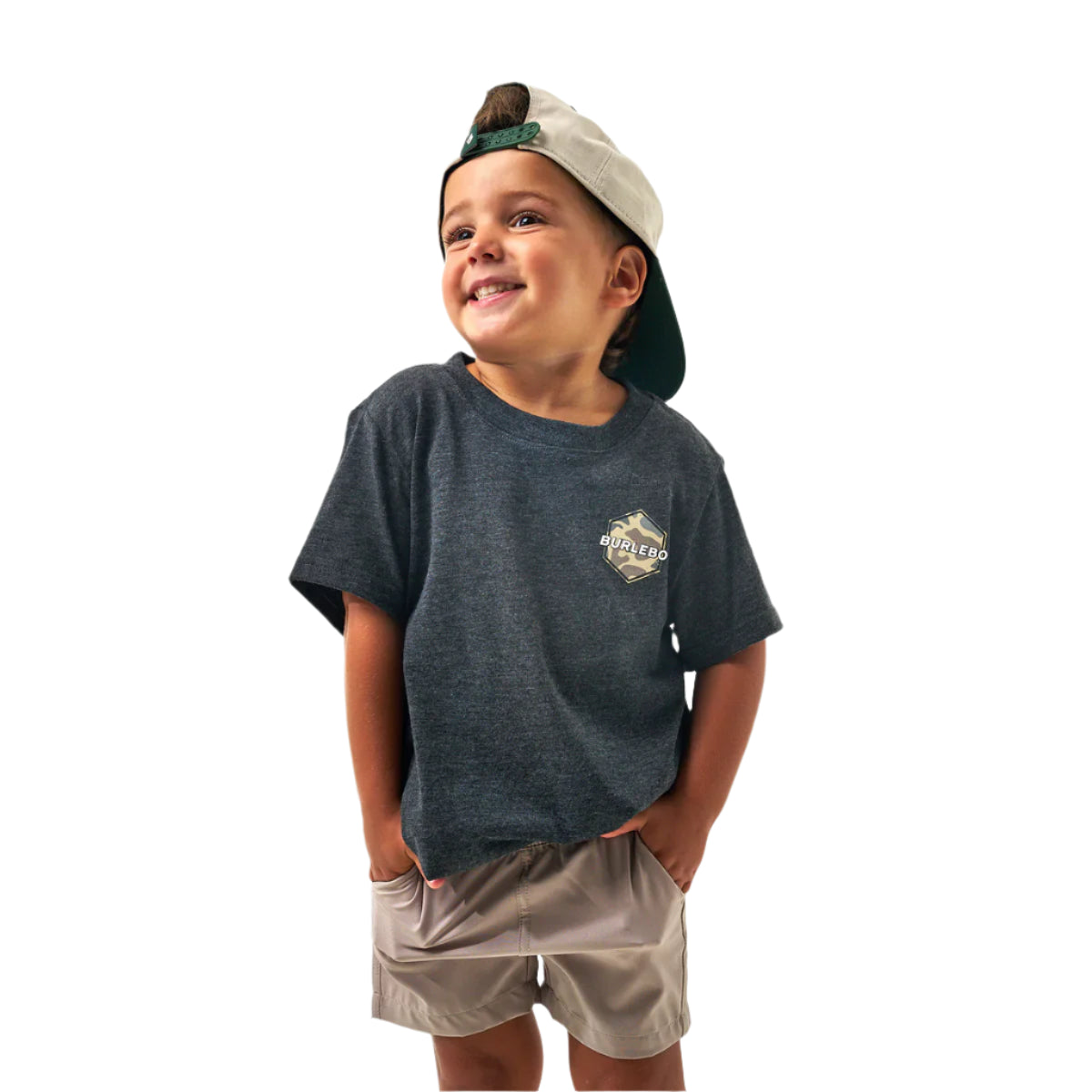 Boy's Burlebo Short Sleeve "Rad Dude" Deer Camo Heather Black Y-SST-DUDDC-HB