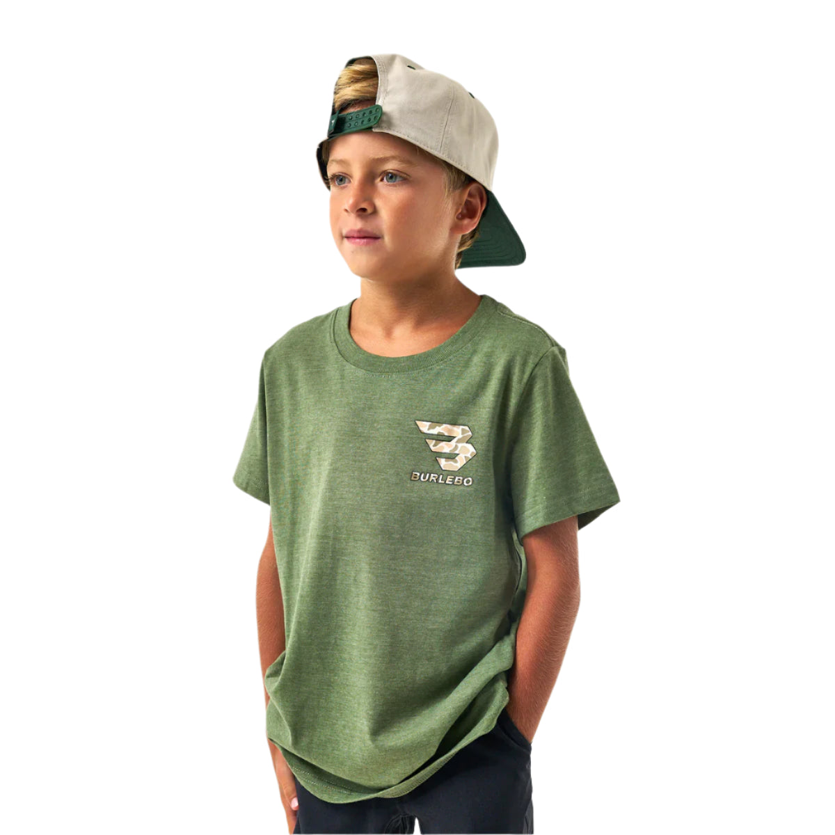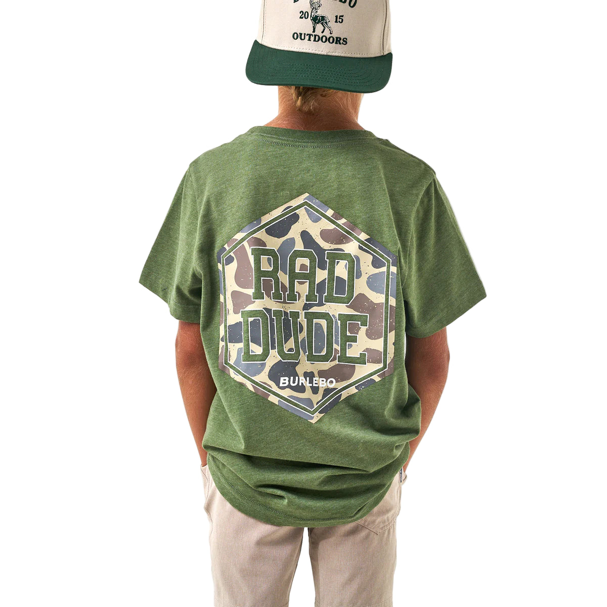Boy's Burlebo Short Sleeve Tee Rad Dude Deer Camo Heather Olive Y-SST-DUDDC-HO