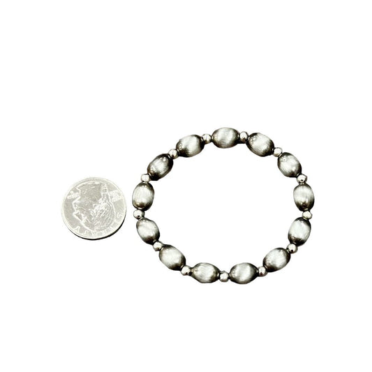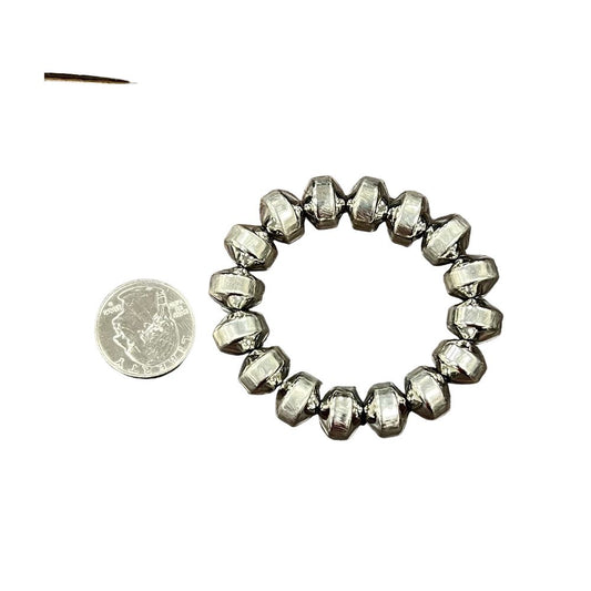 Women's Isac Handmade 12mm Silver Navajo Bead Stretch Bracelet 711659