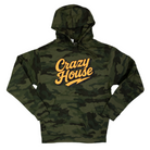 - Camo crazy house hoodie with orange letters on front