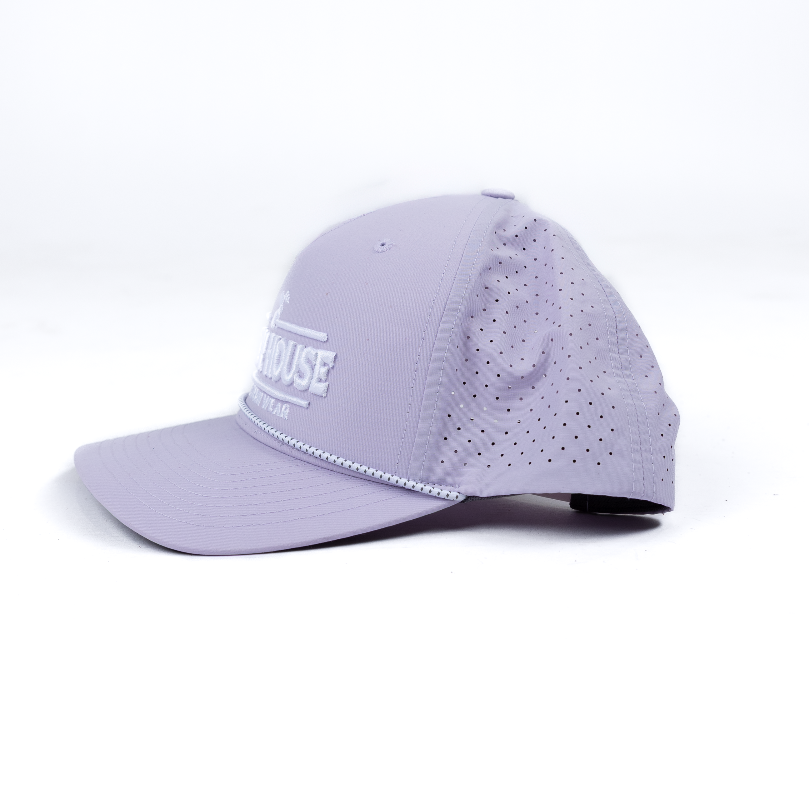 Crazy House Heather Teal Cap with White Stitching and Rope