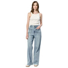 Audrey wide leg jean in light wash denim, offering a perfect blend of style and comfort, making them a staple in all closet. Crafted from 99% cotton and 1% spandex, these pants provide a comfortable fit with just the right amount of stretch. Featuring a flattering high rise and clean hem, they are designed to suit any body shape seamlessly. With a front and back patch pockets, these features versatility ideal for daily wear or ready for everything you do.