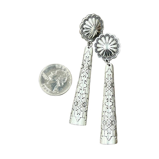 Women's Isac 2.7" Long Concho Turquoise Post Earrings 724197