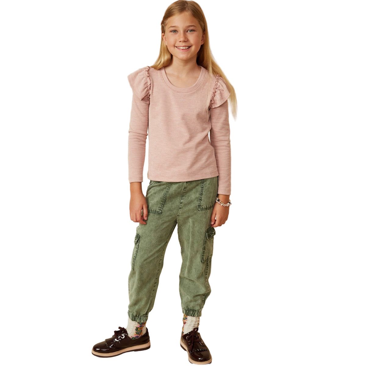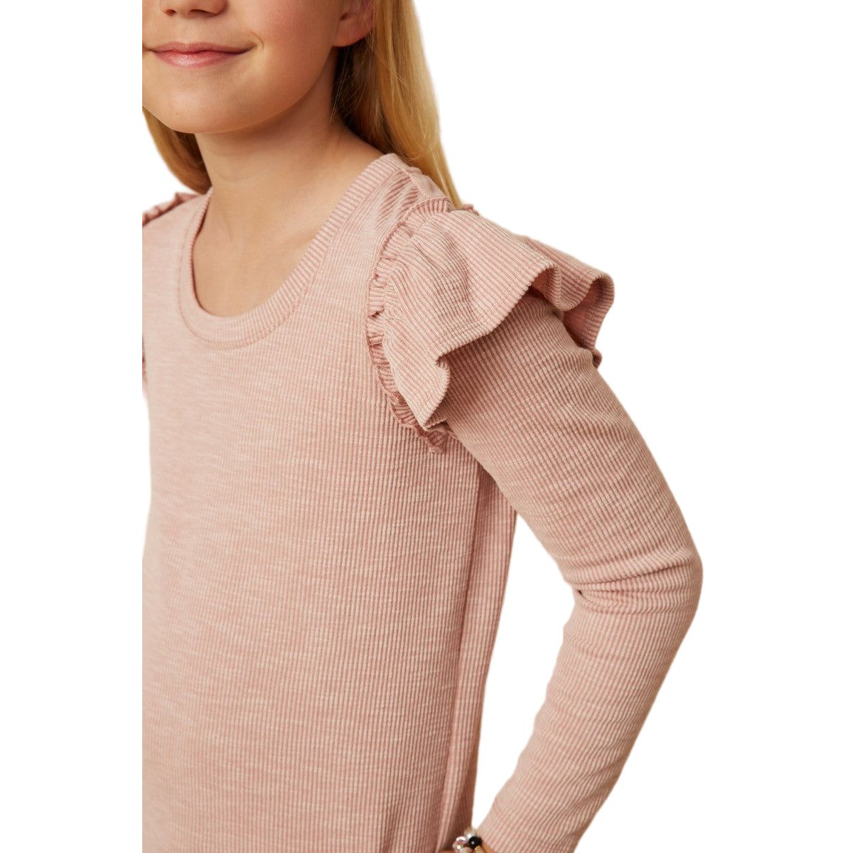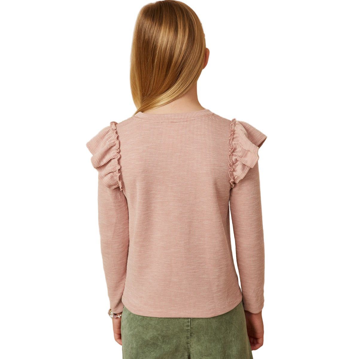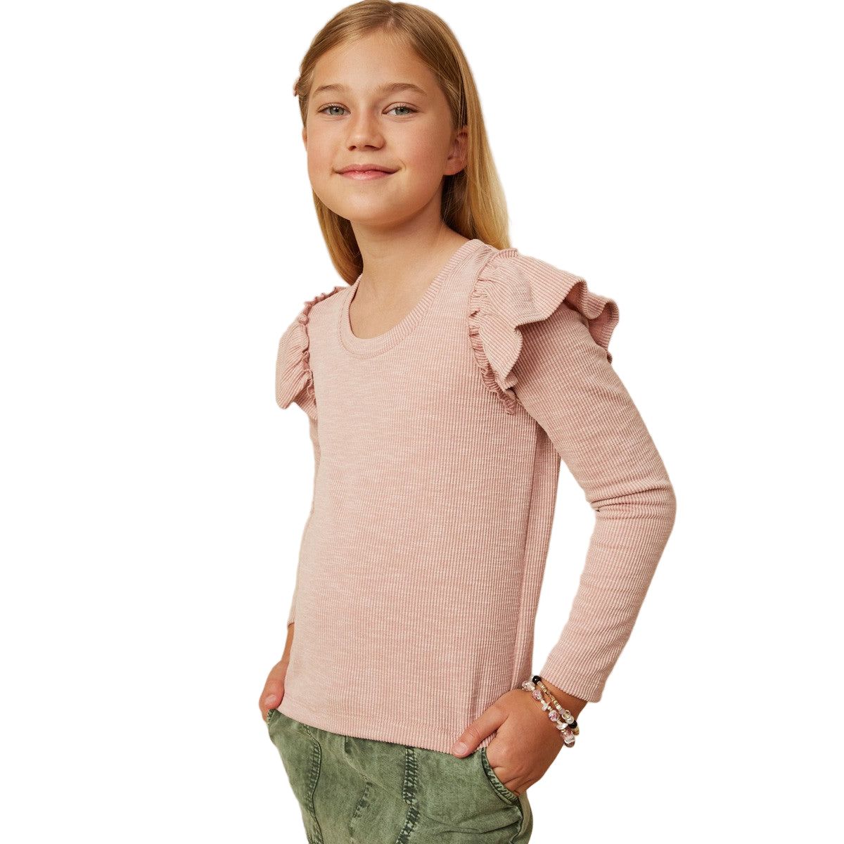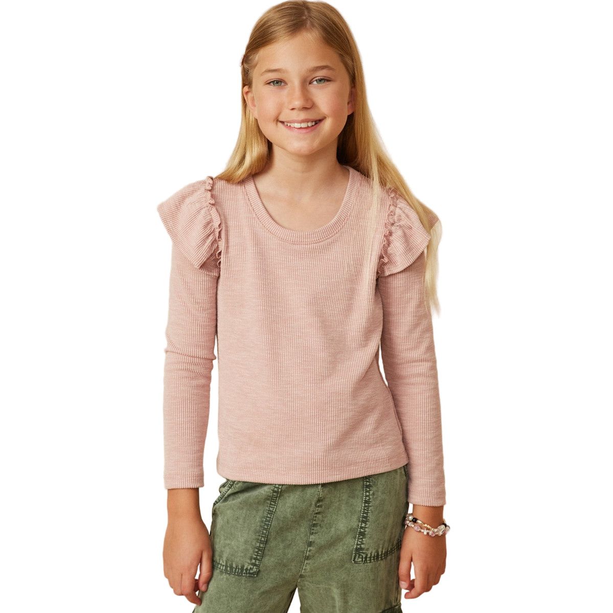 Girls Marled Textured Ruffle Detail Scoop Neck Knit Top
