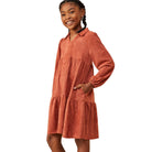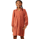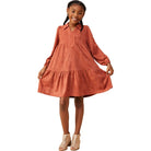 Girls Open Collar Vegan Suede Swing Dress *Suede Knit Fabric *Collar Neckline *Tiered Skirt