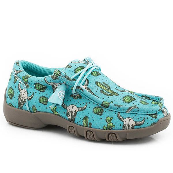 Girl's Roper Driving Moc Lace Up Blue Cactus and Skull Canvas 09-018-1791-2968 BU
