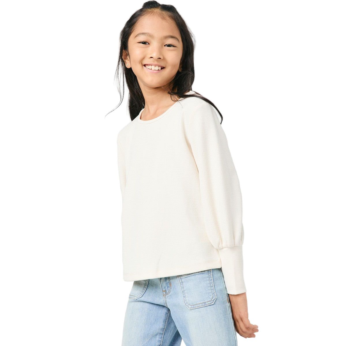 Girls Textured Rib Cuff Knit Top GN4155