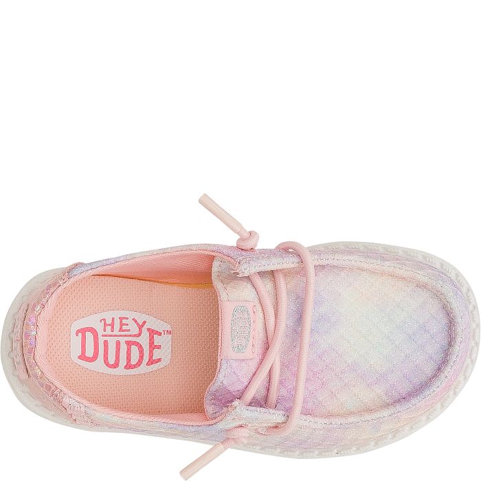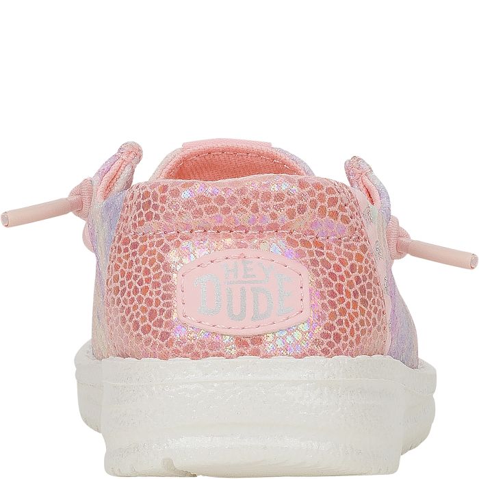 Step into a world of comfort and charm with this delightful HEYDUDE Wendy Mermaid Shimmer Toddler Girls’ (5-10) Casual Shoe! This colorful style features a convenient slip-on closure with customizable no-tie elastic laces. The cushioned insole and lightweight outsole make this platform shoe a comfortable choice. Spruce up her casual attire in style with the HEYDUDE Wendy Mermaid Shimmer Coral Toddler Girls’ (5-10) Casual Shoe!