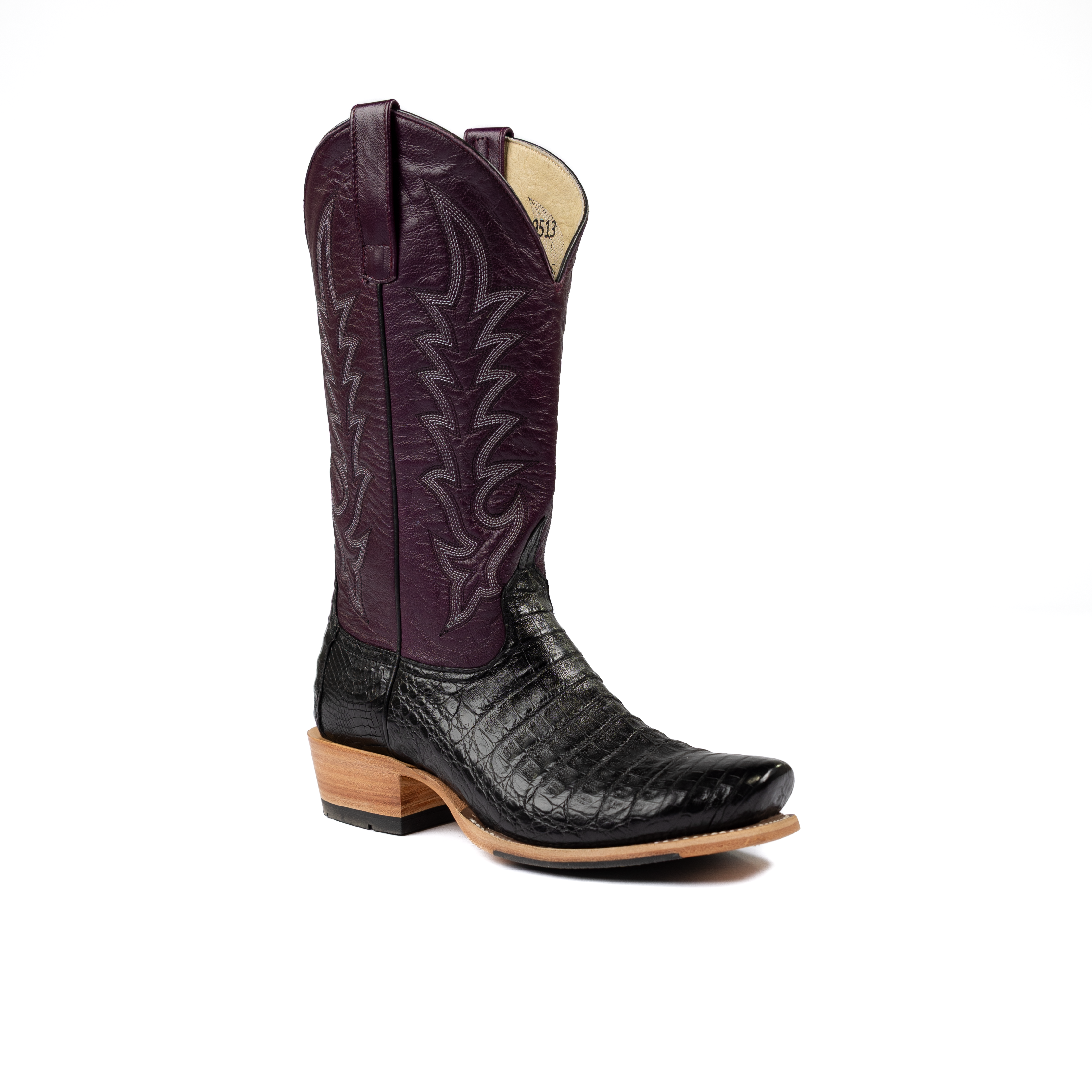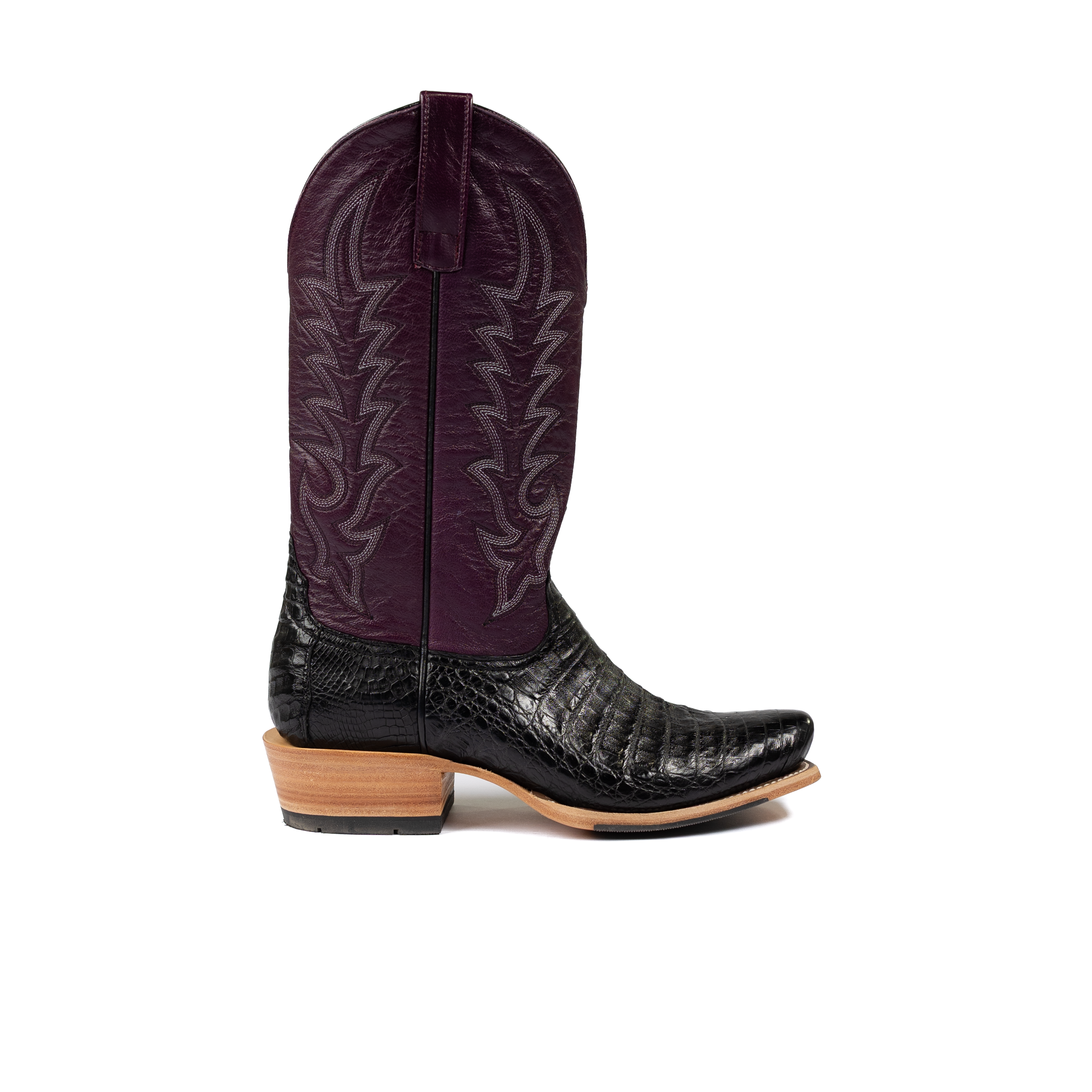 Men's Horse Power Top Hand Black Caiman Belly with 13" Violet Glossy Goat Top HP9513