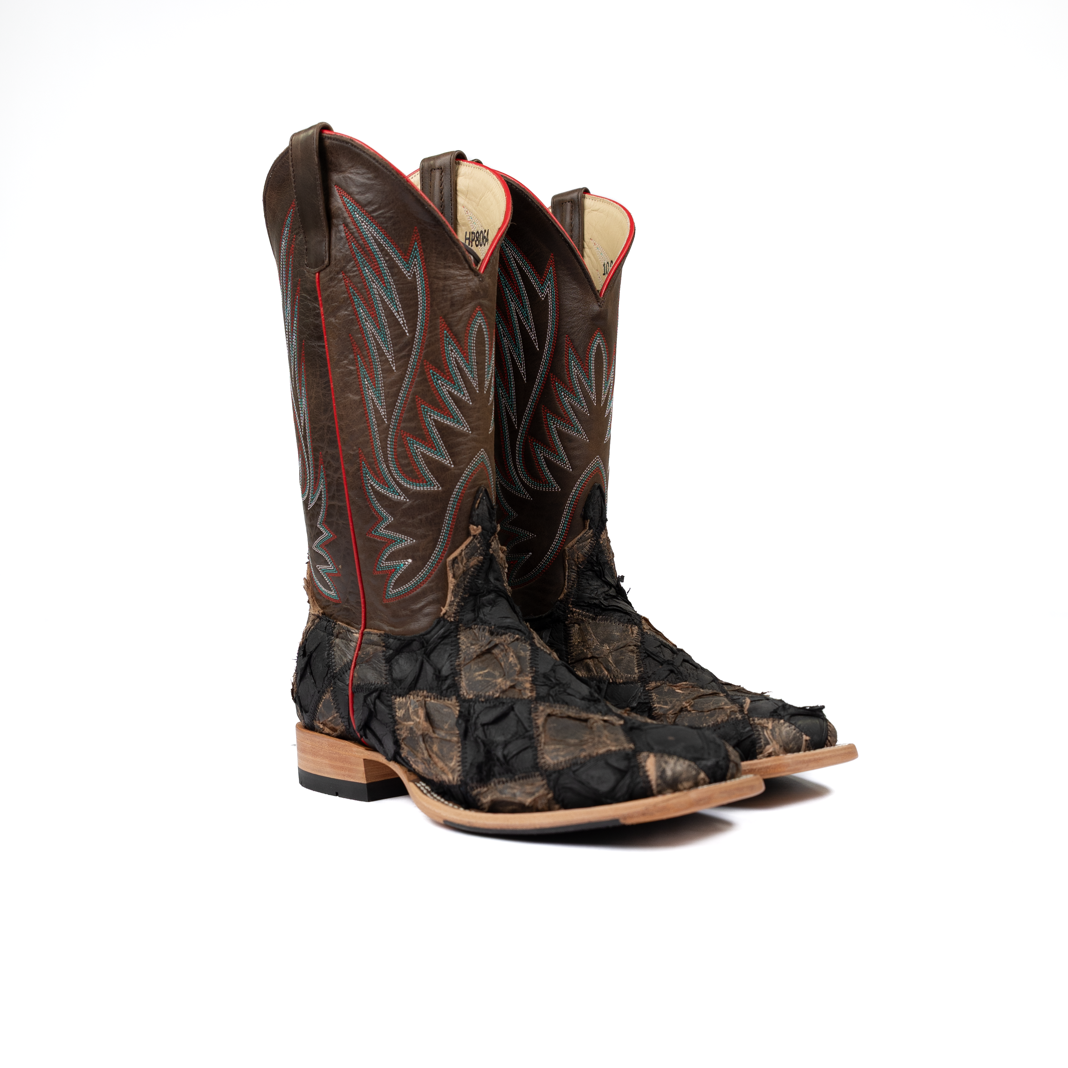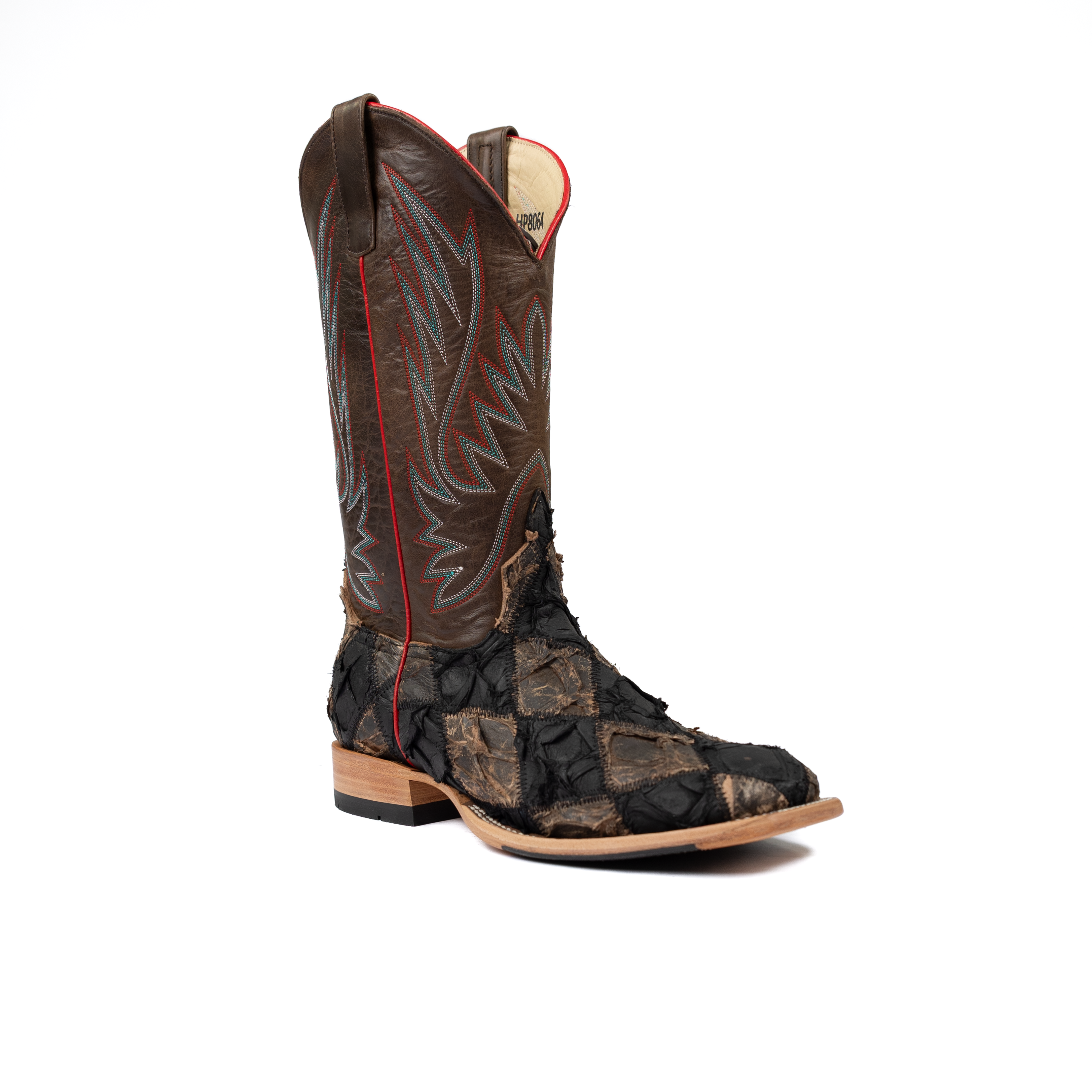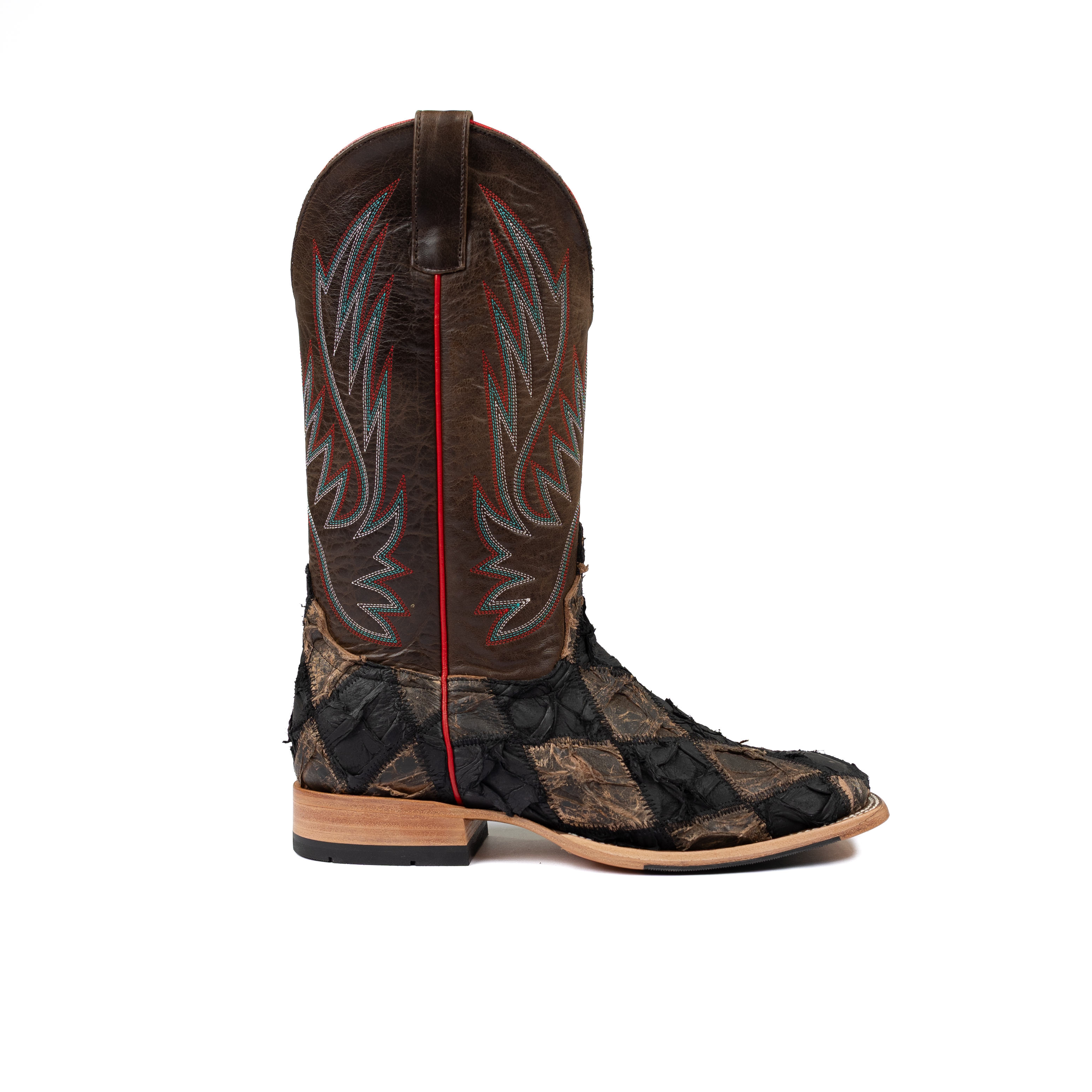 Men's Horse Power Top Hand Black Matte and Toast Big Bass Patchwork with 13" Chocolate Flynn Top HP8064