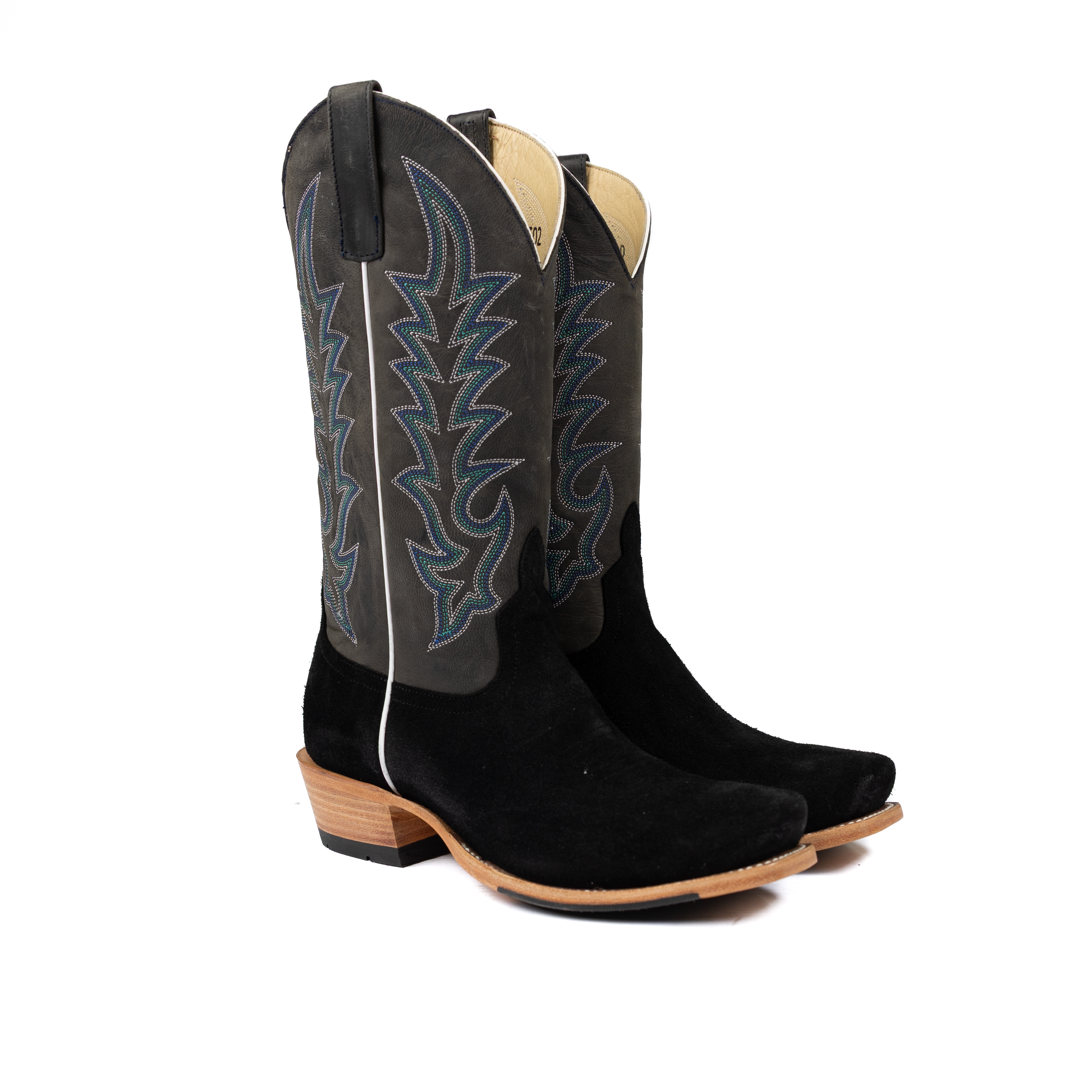 Men's Horse Power Top Hand Black Suede with 13" Dark Blue Goat Top HP9502
