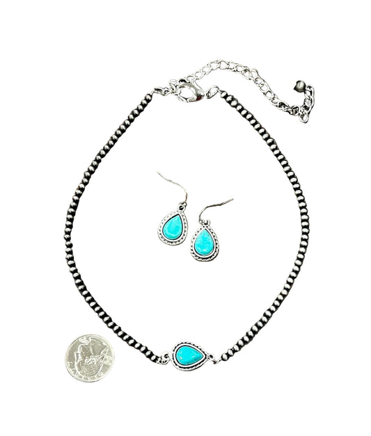 Women's Isac Bar White Turquoise Necklace Earrings Set 732771