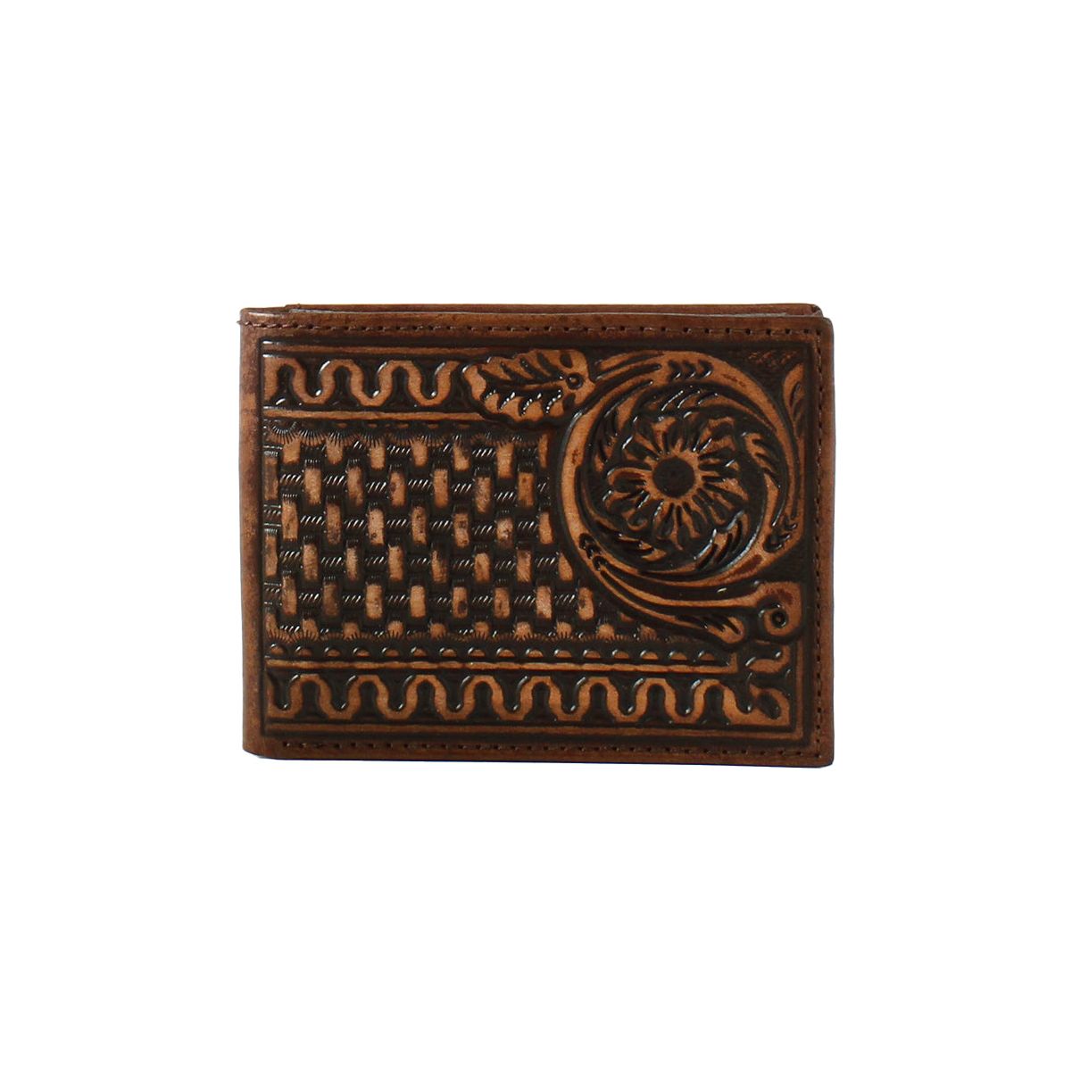 Men's 3d Bifold Brown Wallet Floral Stamped Design D250004502