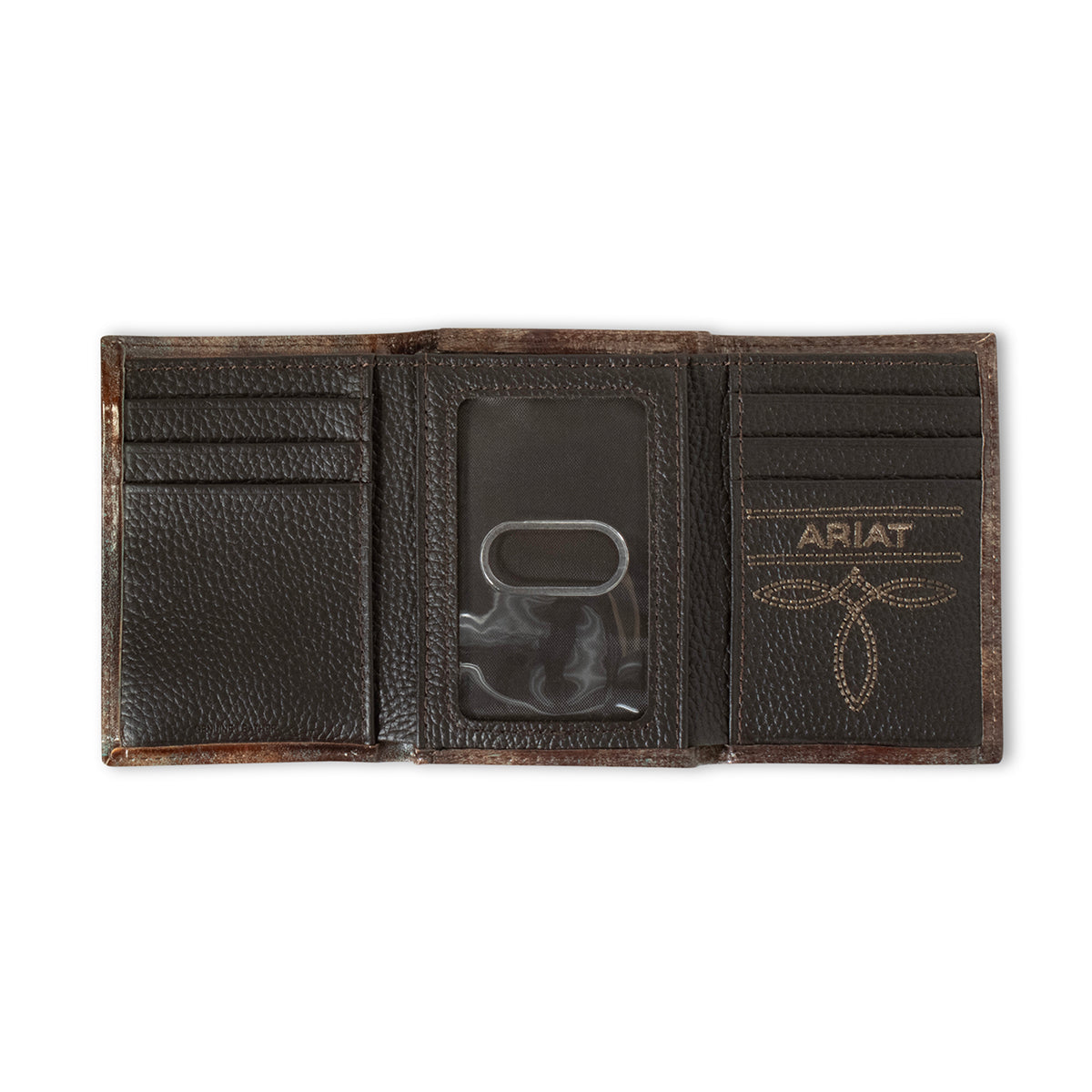 Men's Ariat Brown Trifold Style 100% Leather Wallet A3560202