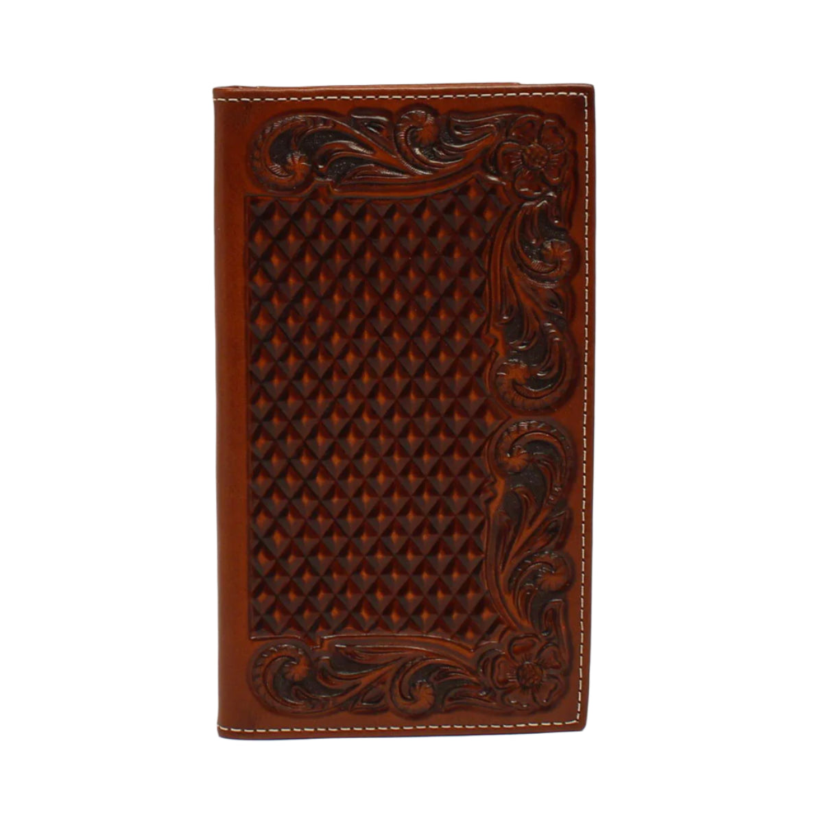 Men's Ariat Tan Rodeo Style Basket Weave and Floral Design Wallet A3544208