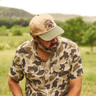 Vintage cotton hat with a snapback closure. Embroidered with the eagle and trout logo.