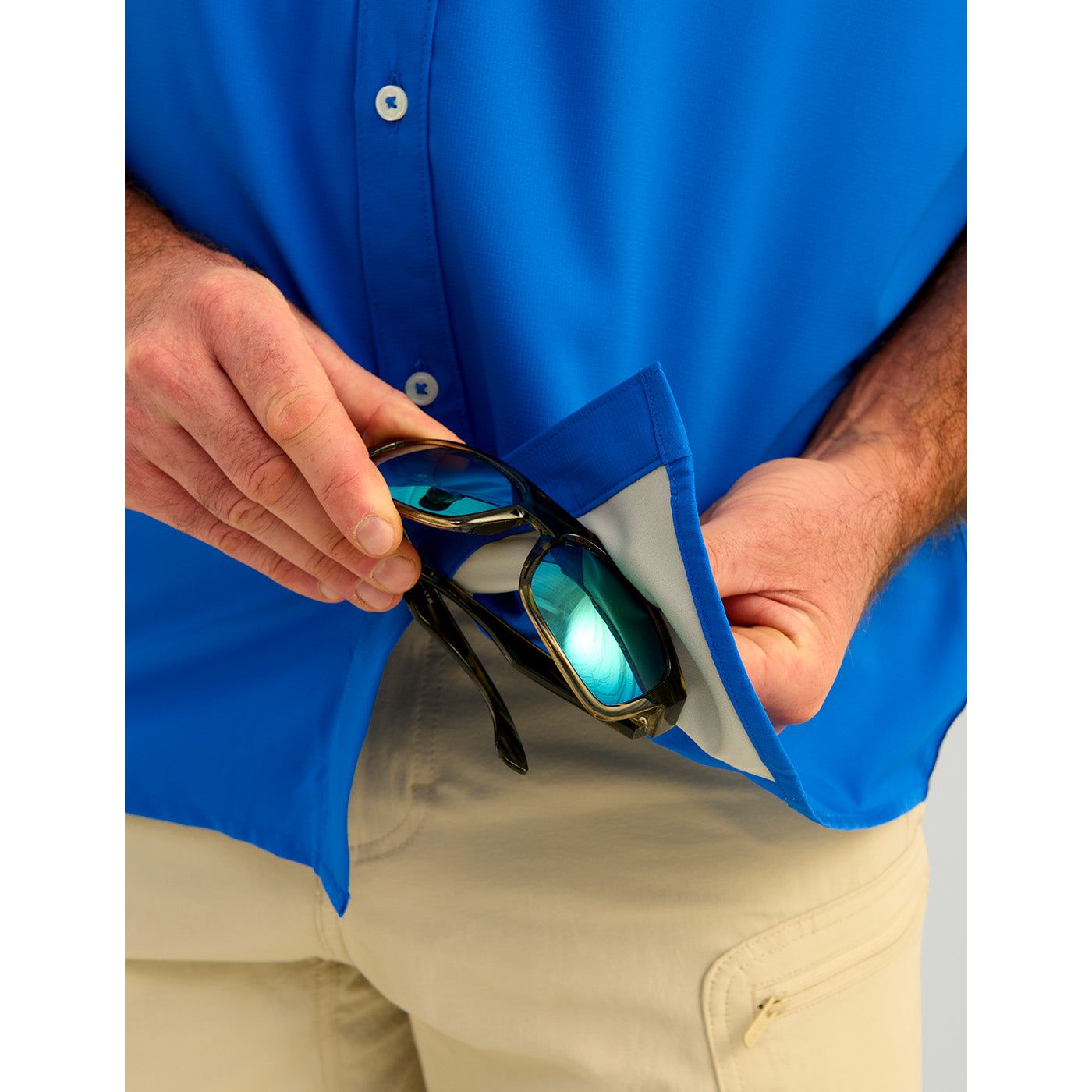 The Huk Tide Point Short Sleeve provides superior performance, designed for comfort and durability both on and off the water. This product offers 30+ UPF protection, mechanical stretch and a quick-drying fabric with moisture transport capability. It also features a mesh-backed chest pocket, perforated back, interior eyewear wipe and button roll up sleeves. Get everything you need in one garment.