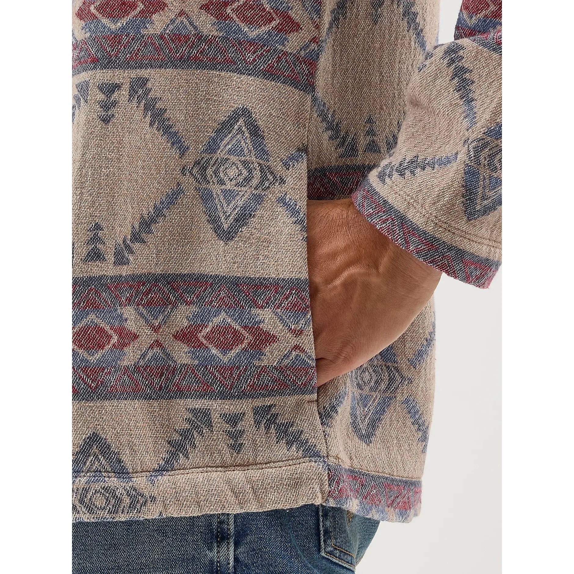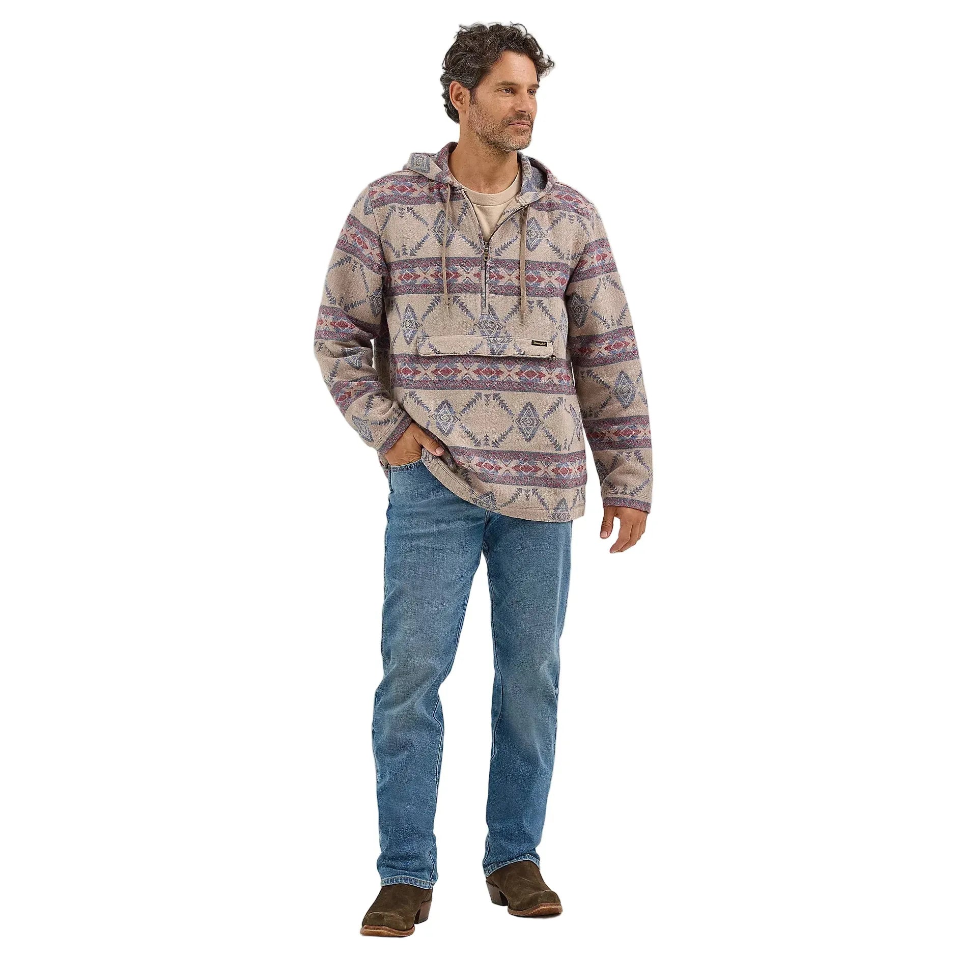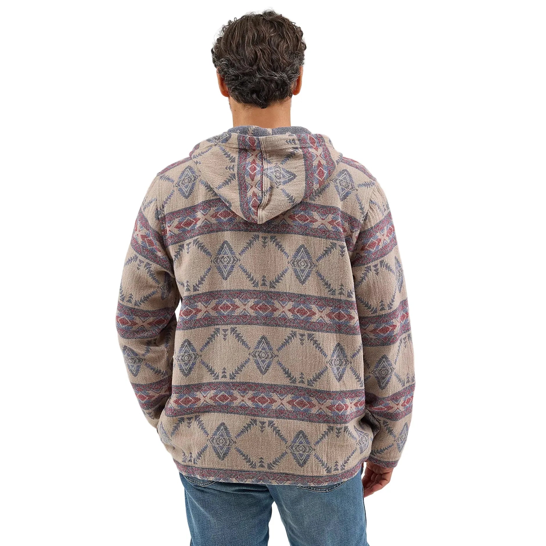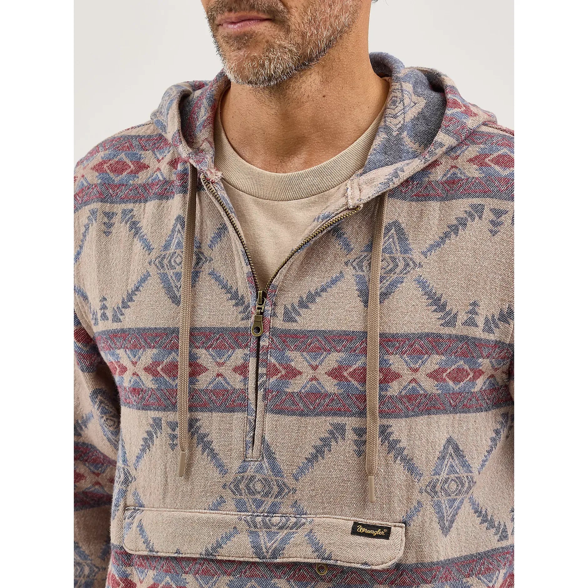 Layer up your look in style with our Men's Hooded Popover Jacket. Crafted from 100% cotton, this Western-inspired hoodie comes with a jacquard geometric design that will separate you from the pack. It also features a 1/4 zip front, a drawstring closure, welt hand pockets, and a pouch pocket that zips to keep your essentials secure.