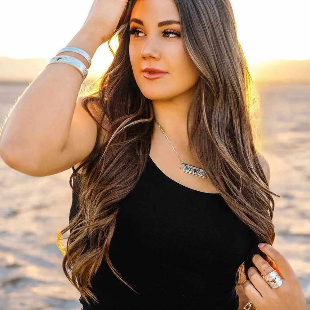 We love the bold style of the Longhorn Trails Necklace! The silver tone bar necklace features a gold tone longhorn through the center. Round turquoise stones on either side add a pop of color to the piece. A gold tone twisted rope sits on the top and bottom of the pendant finishing the piece. An adjustable 19 inch silver tone split chain allows for layering opportunities to create a bold look.