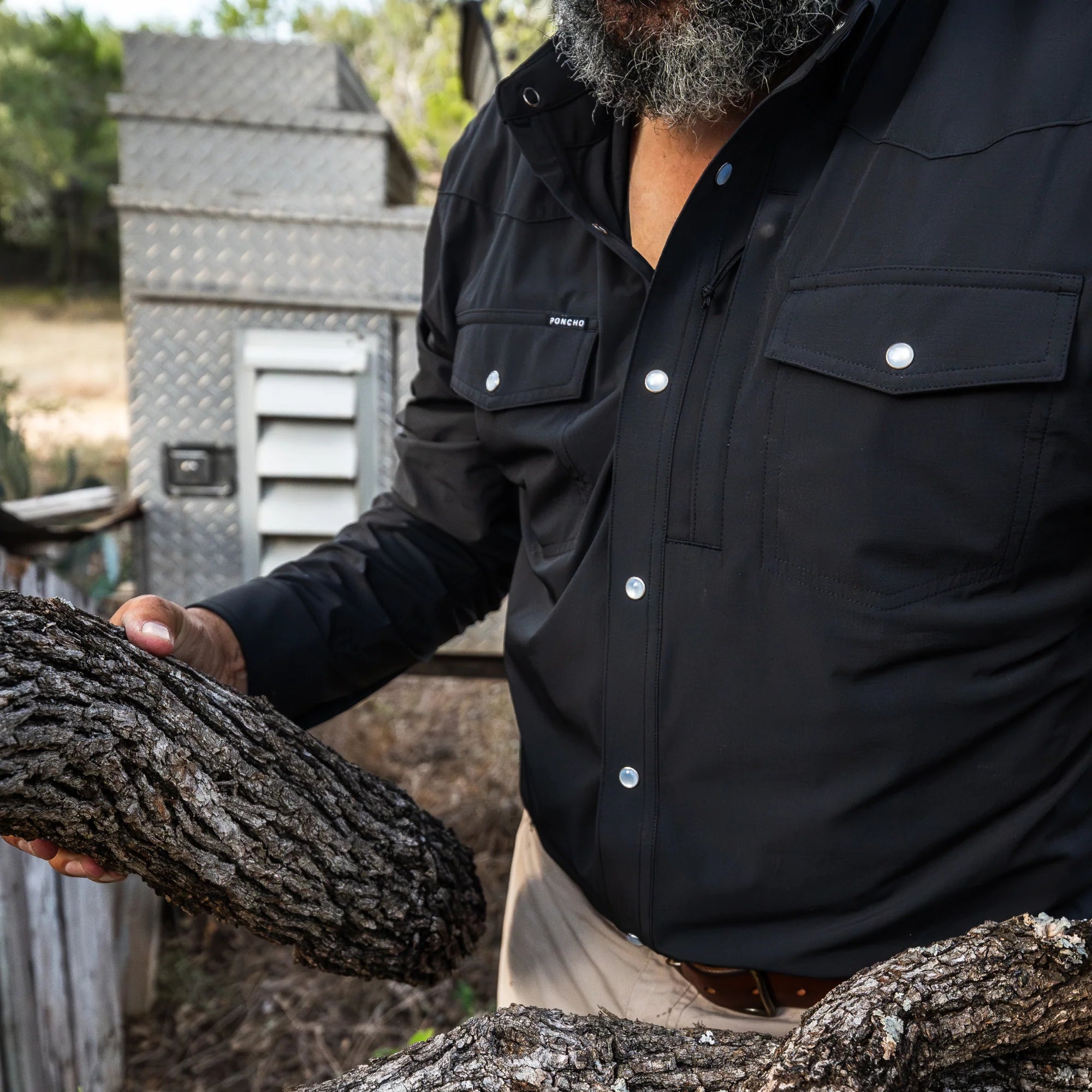 Men's Poncho The Charro Long Sleeve Black Snap Shirt